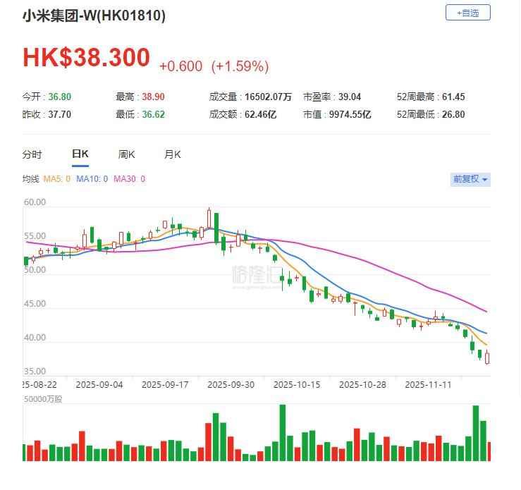 港股小米集团一度涨超3%,现回落至1.9%。消息面上,小米今日发布Xiaomi HAD增强版。
