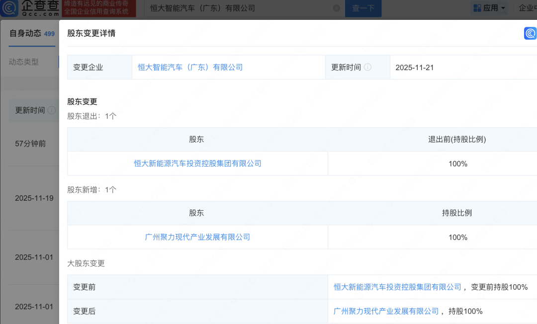 专业金融数据,下一代智能终端 据企查查App,近日,恒大智能汽车(广东)有限公司、恒大新能源汽车(广东)有限公司发生工商变更,原股东恒大新能源汽车投资控股集团有限公司退出,新增广州国资旗下广州聚力现代产业发展有限公司为全资股东。 ![]() 上证报记者查阅显示,广州聚力现代产业发展有限公司成立于2024年10月29日,企业注册资本26.4亿元,实缴资本3000万元。该公司有6名股东,均为广州国资企业。其中,广州产业投资控股集团有限公司、广州南沙开发建设集团有限公司分别持有33.33%的股份,广州钢铁控股有限公司、广州港集团有限公司、广州数字科技集团有限公司、广州金控集团有限公司分别持有8.33%的股份。 对于广州国资接盘的消息,记者向广州聚力现代产业发展有限公司的一个股东方代表求证,得到肯定回复。 “先收回地块。”上述股东方代表说。 对于下一步广州聚力现代产业发展有限公司是否会“下场造车”的提问,该股东代表方表示“下回分解”。 此前,恒大汽车广州南沙区土地已被收回。今年7月8日,广州市规划和自然资源局官网公示了一则《闲置土地认定书》(穗规划资源闲认〔2025〕9号)。 ![]() 图片来源:广州市规划和自然资源局 该认定书提到,广州市规划和自然资源局南沙分局在前期向恒大恒驰新能源汽车科技(广东)有限公司核发《闲置土地调查通知书》,调查宗地已办理《不动产权证》(粤【2022】广州市不动产权第11021857号),登记权属人恒大恒驰新能源汽车科技(广东)有限公司,登记面积437441平方米,土地用途为工业用地。根据《闲置土地处置办法》的规定及《国有土地使用权出让合同》相关约定,认定本宗地自2021年6月9日起为闲置地块,闲置原因为企业原因。 根据《闲置土地处置办法》(国土资源部令53号)第十四条规定,因企业原因未动工开发满两年的闲置土地,将由国土资源主管部门无偿收回国有建设用地使用权。广州市规划和自然资源局南沙分局将根据上述规定收回该宗地块。 资料显示,2020年,恒大新能源与南沙区商务局签订的《投入产出监管协议书》,该地块总投资不低于25亿元,其中研发费用不低于20亿元,投资强度不低于4500元/平方米,且承诺30个月内建成投产。若竞得人未能兑现上述承诺,南沙区有权解除《国有建设用地使用权出让合同》,并对土地进行收回。2020年9月,竞得人以5.9亿元总价拿下土地面积约43.7万平方米的2020NGY-8地块,规划用于新能源汽车整车及核心零部件的研发与制造。 全新妙想投研助理,立即体验 (文章来源:上海证券报) |