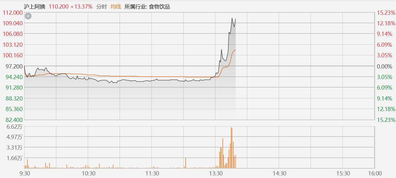 格隆汇11月21日|港股市场新消费概念股沪上阿姨(2589.HK)午后快速拉升,大涨超15%,报112港元。