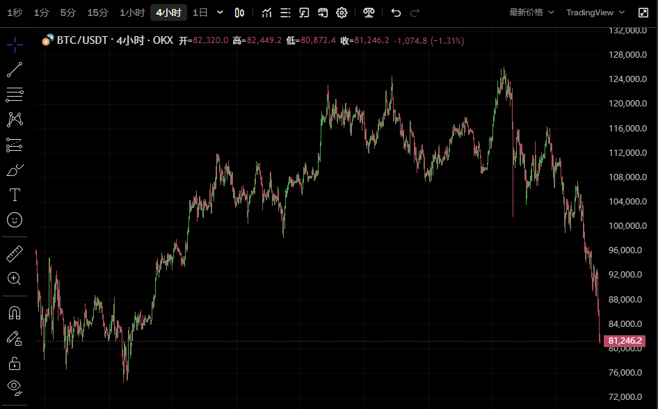 比特币价格跌破81000美元,日内大跌近10%,再创盘中新低。