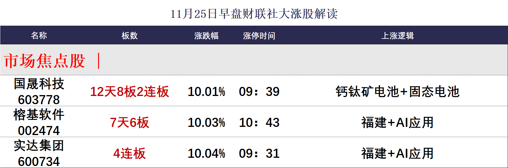 今日午盘全市场共62股涨停,连板股总数14只,15股封板未遂,封板率为80%(不含ST股、退市股)。焦点股方面,固态电池概念股国晟科技12天8板,AI应用概念股榕基软件7天6板、实达集团4连板。
