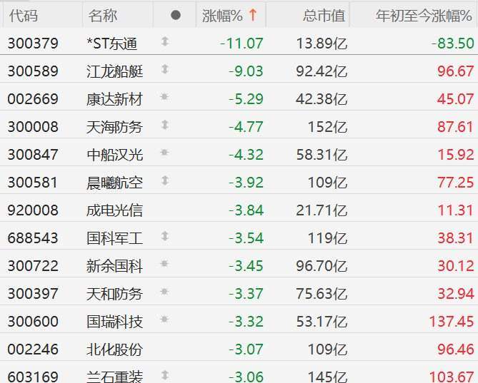 格隆汇11月25日|A股市场军工股回调,其中,江龙船艇(300589)跌9%,康达新材(002669)跌超5%,天海防务(300008)、中船汉光跌超4%,晨曦航空(300581)、成电光信、国科军工、新余国科(300722)、天和防务(300397)、国瑞科技、北化股份(002246)、兰石更装跌超3%。