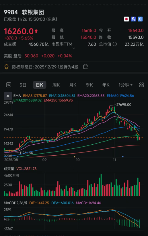 格隆汇11月26日|对人工智能估值泡沫的不安情绪日益加剧,令软银集团的股价承压。交易员越来越多地将软银视为OpenAI的代表。这家日本科技投资公司处于全球人工智能抛售的最前线,人们担心在谷歌(GOOG.O)推出Gemini 3.0后,OpenAI将面临新的压力。自10月下旬以来,软银股价暴跌约40%,市值蒸发超过16万亿日元(1020亿美元),其创始人孙正义准备在OpenAI及其基础设施上加倍押注。柯克・布德利等分析师表示,软银股价的大幅下跌突显出它对OpenAI的敏感性,而不是对人工智能市场整体疲软的敏感性,至少近期是这样。