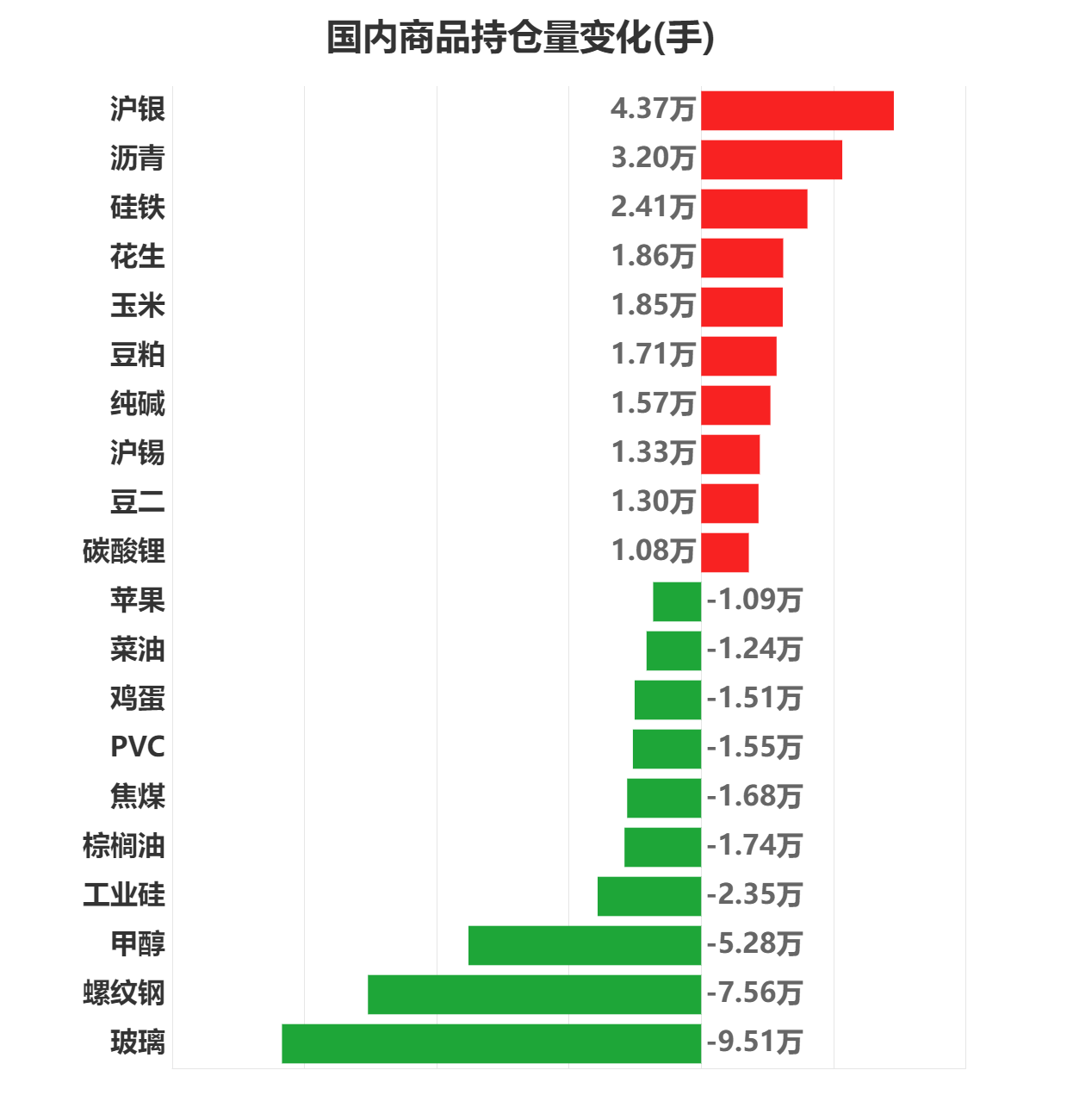 每日期货龙虎榜,带你深度了解市场。 市场一览:周四商品期货综合指数上涨0.97%,日内资金净流入62.90亿元。 市场成交量为2990.61万手,成交额为2.17万亿元。 持仓量为4119.12万手,较前一交易日减少9.87万手。 市场成交量前十和持仓量前十如下图所示: