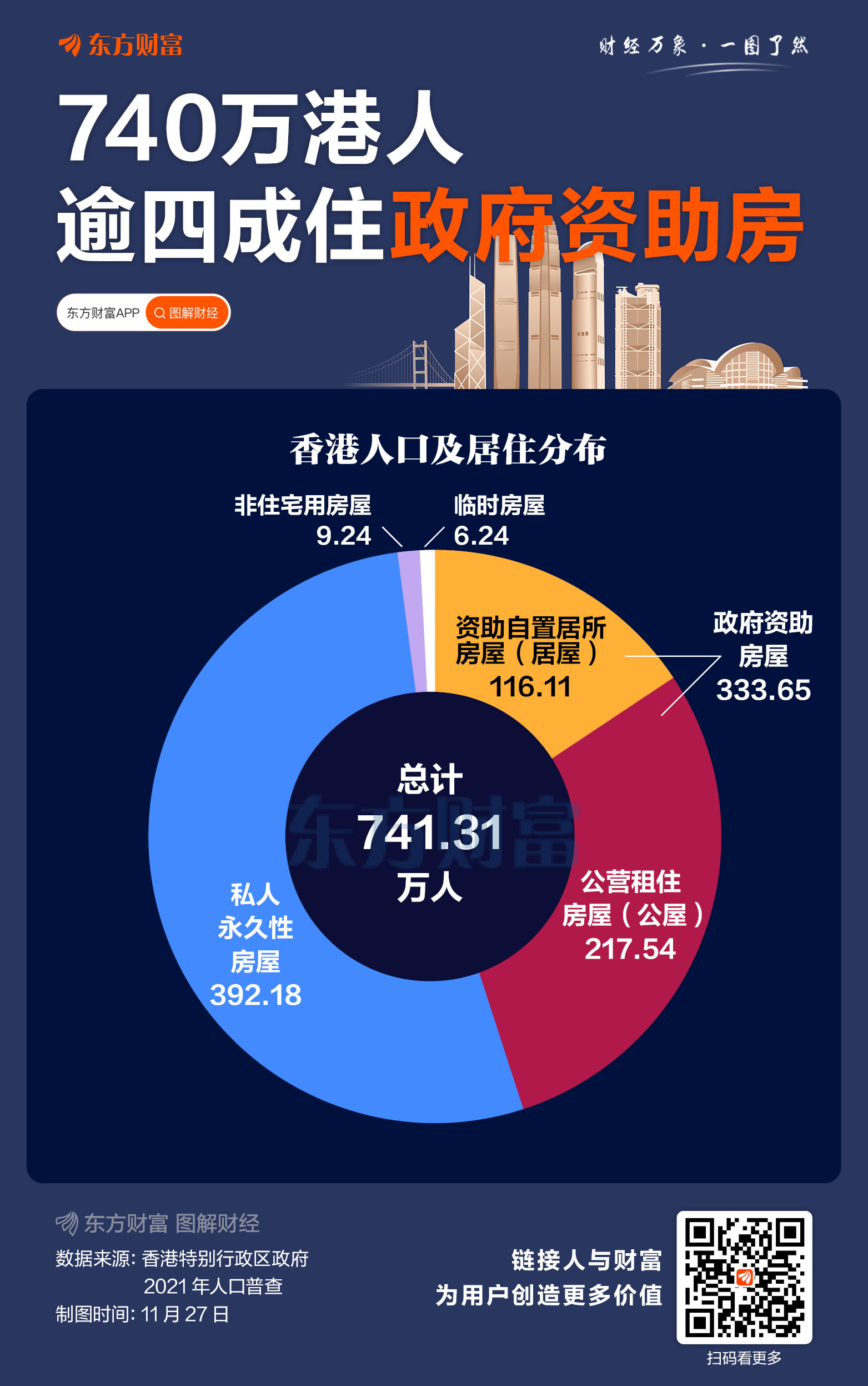 ![]() 昨晚,香港大埔区宏福苑起火。据澎湃新闻报道,此次起火的宏福苑楼群有42年楼龄,共8座楼,每座楼有31层,每层有8个单位。公开信息显示,宏福苑在香港的房屋分类上属于“居屋”(资助自置居所房屋),与“公屋”(公营租住房屋)同属“政府资助房屋”。 据香港特别行政区最近一次人口普查(即2021年)数据,741万香港居民中,入住居屋的有15.7%,入住公屋的占29.3%,也就是说,有45%的香港居民居住在政府资助房屋。 据了解,由香港特区政府资助的居屋和公屋旨在为不同收入群体提供住房支持。今年7月,香港特区政府房屋局局长何永贤表示,未来五年,香港将有5.6万个资助出售单位落成,“是现届(特区)政府上任前的2.6倍”。