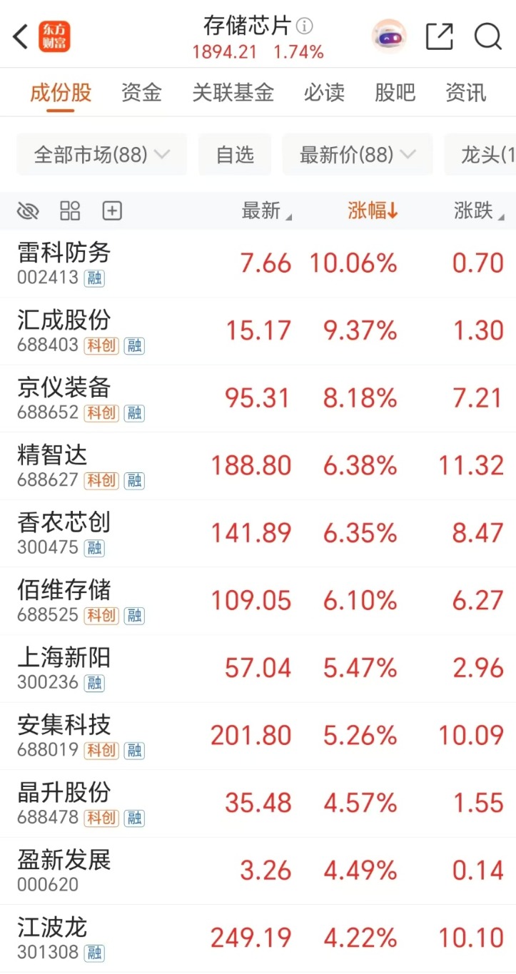 周五(11月28日)存储概念股收涨1.7%,个股方面,雷科防务涨停,汇成股份涨超9%,京仪装备、精智达、香农芯创、佰维存储等个股涨超6%。 ![]() 消息面上,据央视财经,随着人工智能基础设施建设的需求激增,全球存储芯片短缺的情况正在加剧。 本周,多家美国消费电子厂商发出警告,称可能提高部分产品定价。美国戴尔公司首席运营官本周二在电话会议上表示,公司从未见过成本上涨如此之快。他表示,当前部分存储芯片面临短缺,公司可能考虑调高部分设备定价。 美国惠普公司首席执行官也表示,由于芯片库存可能耗尽,预计到2026年下半年,公司利润率将受到挤压,必要时将提高产品价格。 市场研究机构 Counterpoint Research 本月预测,内存模组价格将于 2026 年第二季度前上涨约 50%。 融资客狂买多只存储股 东方财富Choice数据显示,自今年9月以来,杠杆资金净买入多只存储概念股,香农芯创排名第一,融资净买入31亿元;协创数据排名第二,融资净买入16亿元。 江波龙、兆易创新、通富微电、国科微、北京君正、澜起科技、华虹公司等个股融资净买额在15亿元至7亿元之间不等。 德明利、紫光国微、英唐智控、佰维存储、雅克科技、东芯股份、长电科技、沪硅产业、长川科技、太极实业等个股融资净买额在6.4亿元至3亿元之间不等。 ![]() 机构:当下正处于新一轮存储大周期的起点 今年下半年以来,DDR5(DRAM行业成熟工艺制程的最新产品)、DDR4 等主流存储芯片价格单月涨幅突破 100%。 TrendForce集邦咨询最新发布的存储现货价格趋势报告显示,DRAM方面,DDR4与DDR5颗粒的现货价格已经大幅上涨。自九月初至今,DDR4 1Gx8颗粒价格环比上涨158%,DDR5 2Gx8颗粒现货价环比大涨307%,这使得买方难以追价,因此交易量进一步萎缩。然而这并未改变当前DRAM市场的强劲前景。NAND闪存方面,由于供应极度紧张,现货价格持续上涨,报价每日都在波动。 国金证券研报表示,存储器是半导体中仅次于逻辑的第二大细分市场,其历史表现与整个半导体周期走势一致,但波动性大于整个行业,大市场与强周期属性并存。通过复盘发现,每轮存储大周期的开启都是由新兴技术推动产品升级和创新,进而催生新产品的总量、渗透率和存储器价值量的提升,推动存储器市场规模上升一个台阶。随着AI驱动需求提升,当下正走在新一轮存储大周期的起点。 里昂证券韩国研究主管拉纳(Sanjeev Rana)此前在三星发布财报后评论道:“所有与内存相关的产品,无论是先进制程还是传统品类,需求均极为强劲,而供应明显滞后。我们预计,DRAM 与 NAND 价格的此轮上涨周期将持续多个季度。” 交银国际发布研报,维持对存储价格将继续坚挺的判断,认为DRAM的强劲价格将至少延续至2026年三季度,并预计NAND价格将继续保持强劲到至少2026年三季度(之前预计为2026年上半年)。 长城证券表示,此次NAND Flash的价格大幅增长,一方面源于头部存储厂商通过主动调控供应来扭转此前因供过于求导致的价格低迷局面,从而提升盈利能力;另一方面,受AI对储存容量需求急速攀升的影响,存储厂商将更多产能转向更高阶的工艺,造成传统消费级存储产能受到挤压。