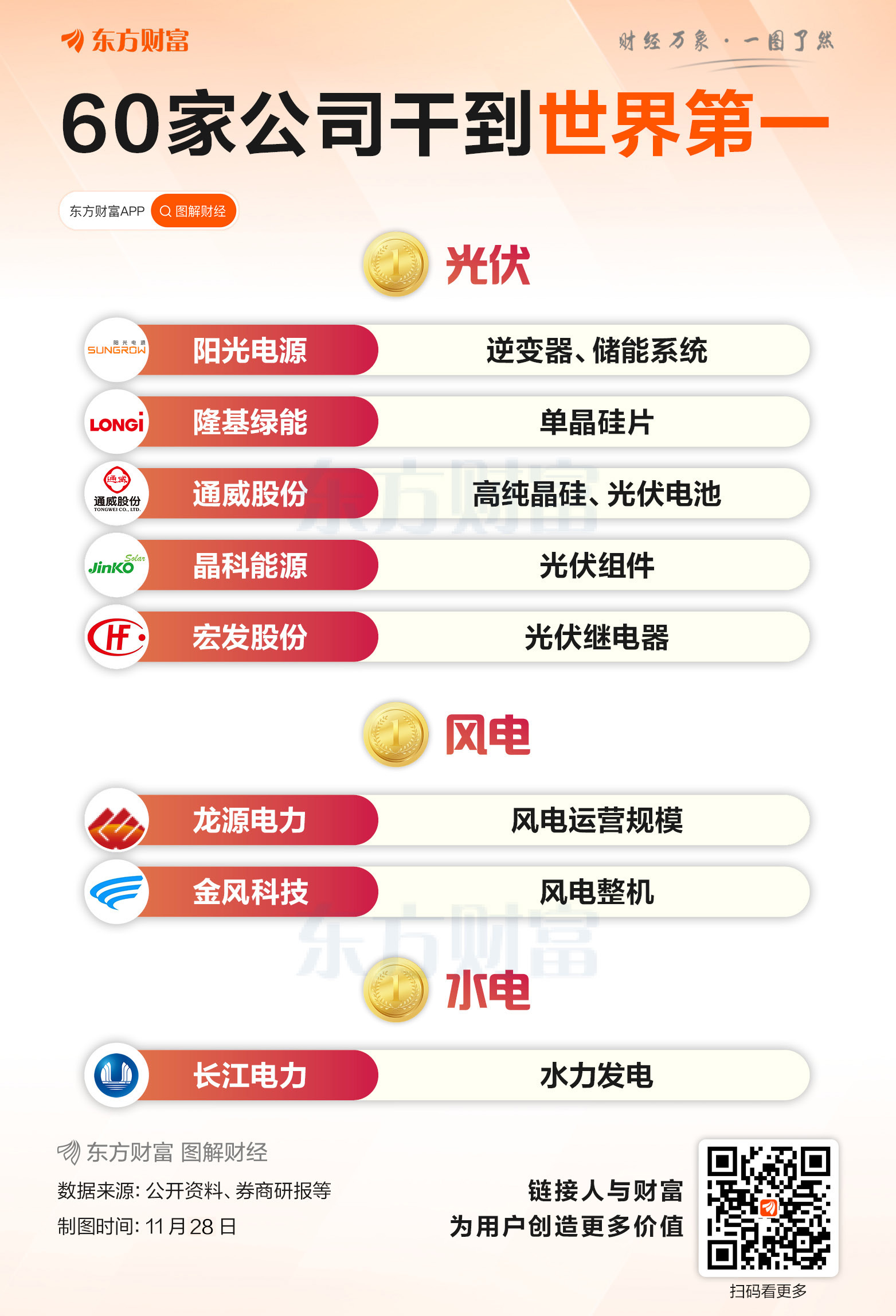 ![]() ![]() ![]() ![]() ![]() 一直以来,投资者对市场中的行业龙头有极高的关注度,对于公司相关的话题也是津津乐道。 据公司官网、券商研报、研究机构数据等公开资料,不完全统计的情况下,在行业内不仅是国内第一、更是全球第一的A股公司至少有60余家。(欢迎读者留言补充,后续将依据相关内容继续更新) 仅以电池行业为例,就有宁德时代、中国宝安、天赐材料等多家全球龙头。据SNE Research数据,截至2024年,宁德时代动力电池市场占有率为37.9%,动力电池使用量连续8年全球第一,储能电池市场占有率为36.5%,连续4年出货量排名全球第一。 ICC鑫椤资讯统计数据显示,2024年,中国宝安旗下重要高新技术产业公司贝特瑞,负极材料全球市占率超过21%,连续15年全球负极材料行业第一。2024年全球硅负极单体产量同比增长17%,贝特瑞产量占比高达60%。 据券商研报及公司招股书,天赐材料产能行业第一,且高度绑定头部电池厂商,行业龙头地位稳固。核心产品电解液出货量连续九年全球第一,2024年全球市场份额达35.7%。 除了电池产业链外,清洁能源、大消费、化工、有色、钢铁、电子等行业也有数十家公司位列世界第一。这些全球龙头企业在特定行业中极具影响力和示范作用,其发展状况直接影响着整个行业的发展水平和竞争力。