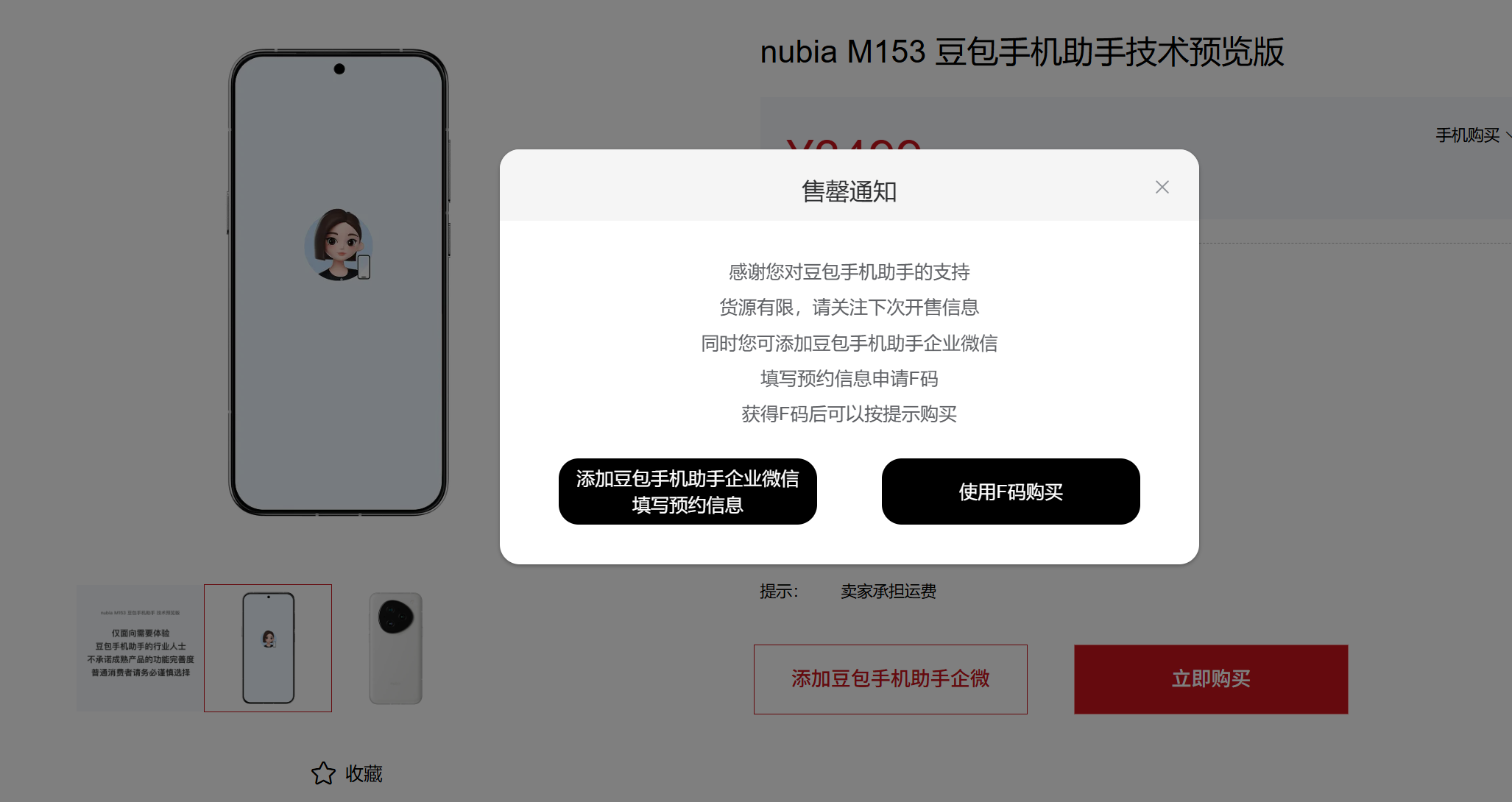 12月2日,中兴商城显示,目前首款“豆包助手”手机已显示“售罄”。