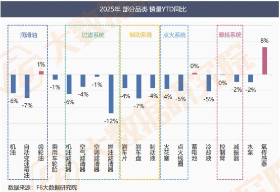 2025年,中国乘用车平均车龄为7.3年,其年均行驶里程约10,089公里。后市场大部分品类销量同比有所下跌,齿轮油、蓄电池及氧传感器销量同比有增长,控制臂则与去年同期持平。