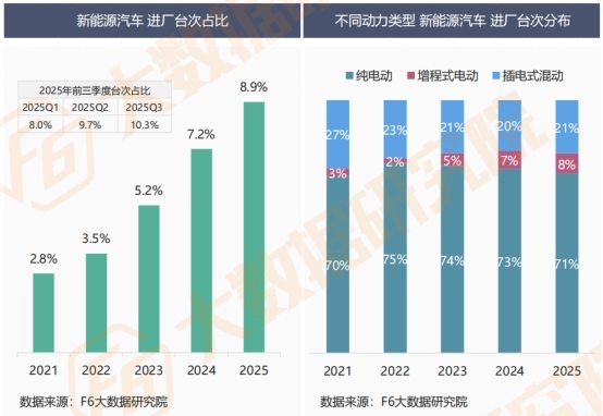 聚焦车价20万以上车型,不同汽车品牌车主的单车年均维保价值呈现显著差异。 车价20-30万区间,别克车主单车年均维保价值突破3,000元,丰田、本田、大众、福特车主年均维保价值则在2,800-3,000元区间波动,且对比2024年,均保持平稳走势; 车价30万以上区间,雷克萨斯、奔驰、奥迪三大品牌车主的单车年均维保价值均超5,000元,处于高位水平。其中,雷克萨斯车主2025年单车维保价值呈明显上涨趋势,成为该区间的显著亮点。从车主具体消费行为数据观察发现,对比2024年,2025年雷克萨斯车主的售后服务结构发生显著变化,维修类业务需求占比提升近5个百分点,成为推动雷克萨斯车主单车维保价值增长的核心因素。 注:以上为同车价区间传统燃油车品牌的单车年均维保价值 十三、独立售后渠道 独立售后渠道中新能源汽车进厂台次继续快速增长。2025年第3季度已超10%,全年占比达8.9%,而三种不同动力类型的进厂台次占比结构趋于稳定。