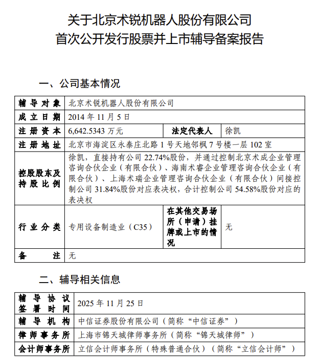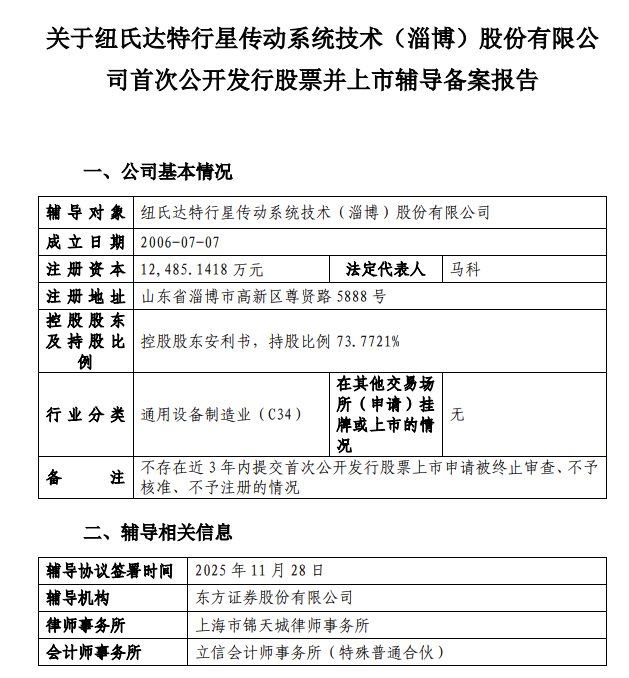 12月2日,证监会网站披露,深圳市时创意电子股份有限公司、北京术锐机器人股份有限公司、纽氏达特行星传动系统技术(淄博)股份有限公司已启动A股IPO辅导。