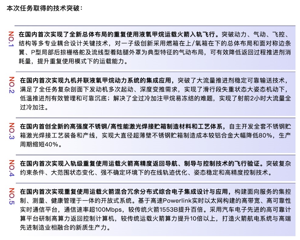 蓝箭航天:朱雀三号首飞入轨并完成关键技术验证 炒股第一步,先开个股票账户 12月3日下午,蓝箭航天发文表示,北京时间2025年12月3日,朱雀三号遥一运载火箭在东风商业航天创新试验区发射升空,按程序完成了飞行任务,火箭二级进入预定轨道。 朱雀三号是蓝箭航天面向大型星座组网任务,自主研制的新一代低成本、大运力、高频次、可重复使用液氧甲烷运载火箭。朱雀三号遥一运载火箭采用单芯级两级串联构型,一二级箭体直径4.5米,整流罩直径5.2米,全箭长66.1m,起飞质量约560t,起飞推力7542kN。动力系统基于蓝箭航天自主研制的天鹊系列液氧甲烷发动机,一级采用九台天鹊12A发动机并联;二级采用一台天鹊15A真空型发动机。朱雀三号一子级在级间分离后可进行垂直返回软着陆,设计重复使用次数不低于20次,成熟后航区回收状态下近地轨道运载能力不低于18吨,具备互联网星座一箭多星部署能力。 此次任务的飞行过程中,火箭起飞、一二级分离、二级发动机起动、整流罩分离、二级发动机关机、二级滑行、二级发动机二次起动等关键动作均按计划完成,表现稳定可靠。与此同时,本次任务开展了一子级垂直回收技术的飞行验证。根据飞行测量数据,火箭一子级在着陆段点火后出现异常,未实现在回收场坪的软着陆,残骸着陆于回收场坪边缘,回收试验失败,具体原因正在进一步排查中。 ![]() 蓝箭航天表示,朱雀三号首飞入轨并完成关键技术验证,体现了我国商业航天产业在高质量发展道路上的创新突破与战略担当。蓝箭航天稳步推进朱雀三号的型号研制与发射回收工作,接下来将继续以重复使用火箭技术为牵引,持续提升技术成熟度。 (文章来源:界面新闻) |