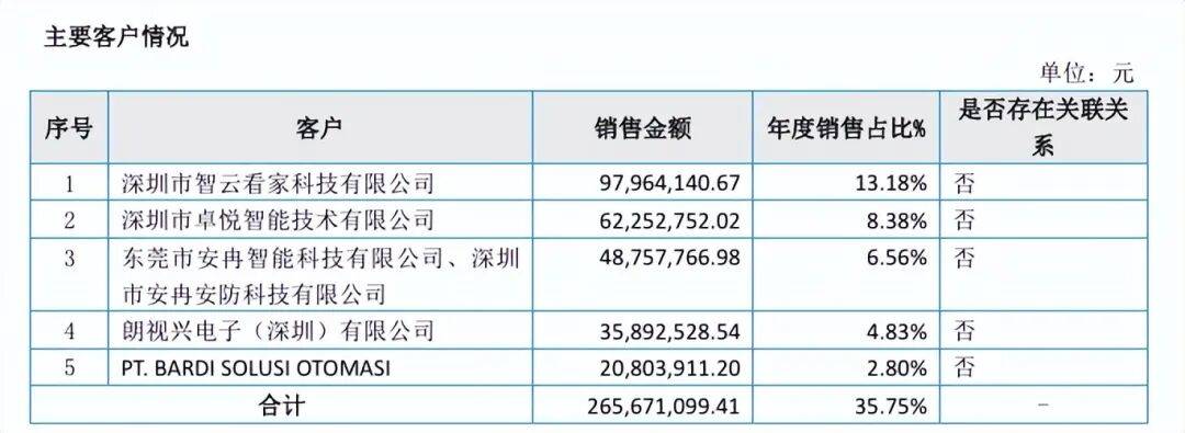 (截自国家计算机病毒应急处理中心官网) 多处信披曝出疑点 首先是大客户销售数据未能入围前五大客户的疑点。 在首轮问询回复中,觅睿科技详细披露了2022年至2025年1-6月期间对主要ODM客户的销售情况,其中,一个值得关注的亮点是2024年对Dorel集团的销售表现。据问询回复文件显示,该公司当年向Dorel集团销售婴儿监护器成品金额达2,676.74万元。然而,这一看似亮眼的销售数据却在公司其他官方文件中出现了矛盾。 公开资料显示,Dorel集团是一家总部位于美国的全球性消费品公司,业务版图横跨婴幼儿产品、家具家居及运动休闲产品三大领域,市场覆盖北美、欧洲及亚太地区。觅睿科技与Dorel集团的合作始于2021年,经由行业合作伙伴引荐后,成为该集团在同类产品独家供应商。 根据觅睿科技2024年年度报告,其第五大客户的销售金额仅为20,803,911.20元;而当年对Dorel集团2,676.74万元的销售额却未能跻身该年度前五大客户行列。