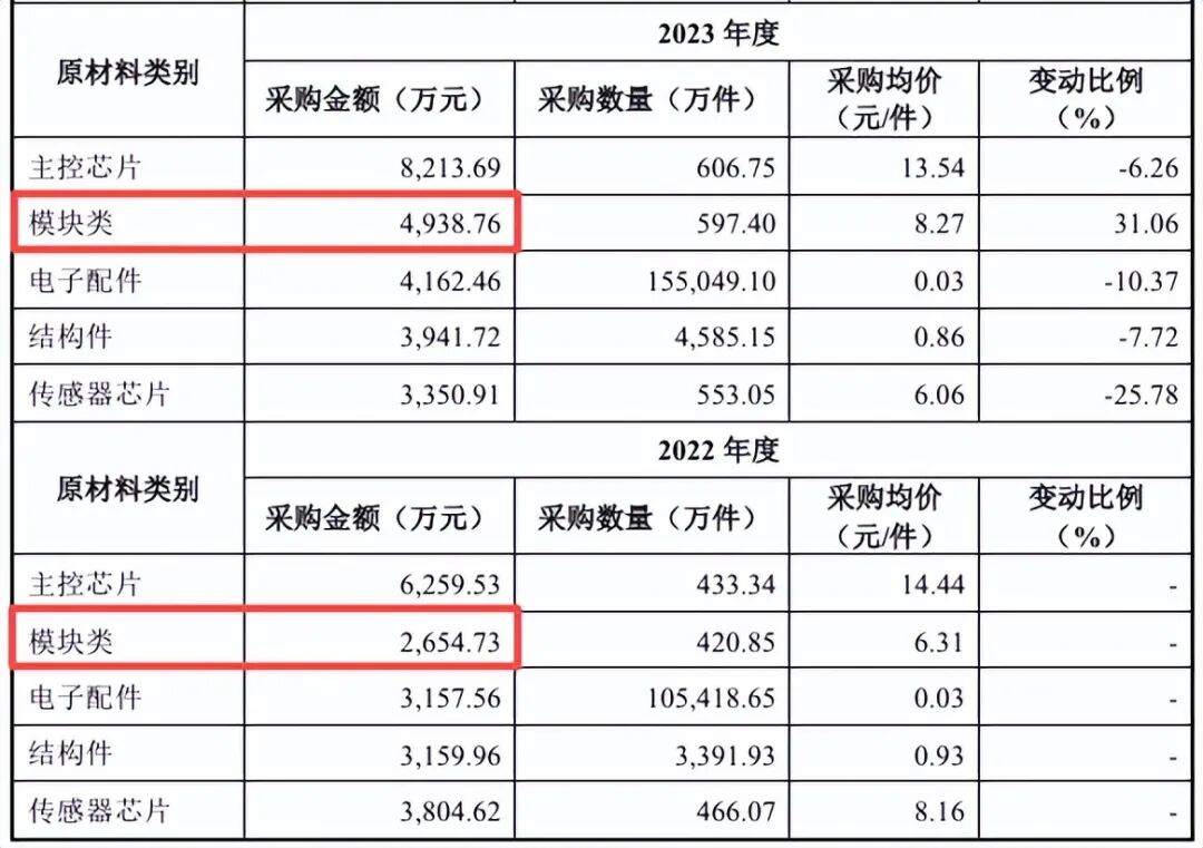 (截自觅睿科技2024年年报) 值得一提的是,截至2025年9月1日,Dorel集团由于内部资金安排原因,存在应收账款逾期的情形,觅睿科技也安排业务人员对未回款客户进行针对性的催款。 其次,觅睿科技一子公司的财务数据披露也存在疑点。 根据招股书披露,觅睿科技旗下杭州睿盯科技有限公司(下称:杭州睿盯)2023年的财务数据为:总资产3,296.36万元,净资产为-404.63万元,净利润亏损248.42万元。同时,杭州睿盯持股95%的Arenti Europe B.V(睿盯欧洲有限公司,下称:欧洲睿盯)2023年的业绩表现差强人意:总资产为462.52万元、净资产为-122.81万元、净利润为-239.02万元。 然而,在公司2023年年报(更正后)中,对于杭州睿盯财务数据的披露却有所不同。该年报显示,杭州睿盯2023年总资产为3,706.76万元,净资产为153.50万元,净利润的亏损大幅收窄至-8.99万元。若年报中杭州睿盯的财务数据为与欧洲睿盯的合并口径,不知为何在招股书披露两家公司净资产都为负的状况下,年报中净资产却转为正值。 再次,觅睿科技的招股书与首轮问询回复中关于原材料的采购额,也存在不一致的情况。 据招股书,2022年觅睿科技原材料采购中对模块类原材料采购金额为2,435.77万元,2023年为4,770.46万元。但在首轮问询回复文件中,却显示2022年采购模块类原材料的金额为2,654.73万元,2023年为4,938.76万元。