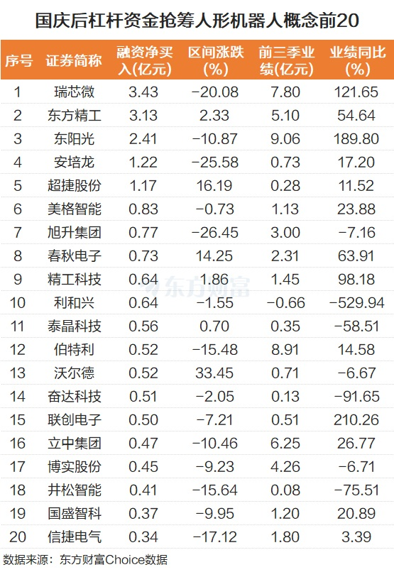 政策环境持续友好 从政策来看,从2025年蛇年春晚舞台的机器人扭秧歌,到北京亦庄的机器人马拉松,再到浙江杭州的机器人格斗赛……人形机器人正逐渐“破圈”,从“实验室”迈向各类“应用场”。而这背后,与政策环境的友好是密不可分的。 今年以来,以人形机器人为典型业态的具身智能成为我国培育未来产业的重要方向。北京、上海、广东深圳、浙江杭州等多地密集出台专项政策,形成了一场面向未来的产业竞逐。 作为全国较早将“具身智能”写入地方政府工作报告的省份,广东在今年2月明确提出,要加快启动布局人形机器人等重点领域研发项目。除了政策支持,北京、上海、深圳等10余个地方政府已建立或筹备建立相关产业基金。 从企业来看,头部企业已率先开启证券化。今年以来,宇树科技、乐聚智能、智元机器人等人形机器人头部整机厂密集启动IPO、并购上市等资本化动作,行业开始迈入“产业化+资本化”双轮驱动发展阶段。 融资客抢筹前20个股 从杠杆资金角度来看,部分人形机器人概念也被积极抢筹。比如瑞芯微,国庆后融资客融资净买入3.43亿元,该股前三季度归母净利润7.8亿元,同比大增121.65%。东方精工紧随其后,融资客融资净买入3.13亿元,前三季度赚了5.1亿元,同比增54.64%。东阳光居第三位,被融资净买入2.41亿元,前三季度赚了9.06亿元,同比大增189.8%。 ![]() 研发投入占比前20个股 而从研发投入占营收比角度来看,东方财富Choice数据显示,安路科技以69.45%排在首位。帝奥微紧随其后,研发投入占比为35.22%。当虹科技、创耀科技、芯朋微排名也靠前。 ![]() 2026年迎量产元年? 往后看,“2026年是人形机器人的量产元年,当前临界点已至。”开源证券分析师孟鹏飞指出,海外特斯拉和国内产业进展持续加速,后续催化因素较多。展望2026年,人形机器人将进入量产期,大厂躬身入局,政策支持和补贴有望进入实际阶段,“趋势走强、景气上行”的布局窗口已然开启。而国家发展改革委健全具身智能准入与退出机制、营造公平竞争环境的举措,既正向引导行业迈向良性发展轨道,也释放出人形机器人相关支持政策或已逐步临近的信号。 高工机器人产业研究所(GGII)数据显示,2024年全球人形机器人市场规模约10.17亿美元,预计2030年将达150亿美元,年复合增长率超56%;同期销量从1.19万台增至60.57万台。中国市场前景也很广阔,2030年规模预计达380亿元人民币,销量跃升至27.12万台,占全球份额44.77%。 不过,随着人形机器人的关注度提升,市场上有关于“速度”与“泡沫”的讨论也多了起来。国家发展改革委政策研究室副主任李超此前表示,“速度”与“泡沫”一直是前沿产业发展过程中需要把握和平衡的问题,这对于具身智能产业来讲,也是一样的。当前,人形机器人在技术路线、商业化模式、应用场景等方面尚未完全成熟,随着新兴资本的加速入场,我国目前已有超过150家人形机器人企业,这个数量还在不断增加,其中半数以上为初创或“跨行”入局,这对鼓励创新来讲是一件好事;但也要着力防范重复度高的产品“扎堆”上市、研发空间被压缩等风险。面对机遇与挑战并存的局面,关键在于合理引导。 (文章来源:东方财富研究中心) |