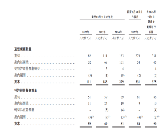 然而,也正因为门店数量的增加,导致了单店收入和客单价不断被“稀释”。 支撑起核心营收的直营门店方面,2023年单店日均销售额为1.4万元,到了2024年便降至1.24万元,同比下滑11.43%。截至2025年6月末,单店日均销售额为1.1万元,同比下滑了10.69%。客单价也是连续三年下降,从2022年的36.2元降至2024年的32.1元,到2025年上半年,已降低至31.8元。 特许经营门店也未能幸免,单店日均销售额从1.42万元降至1.19万元。对此,遇见小面解释称,客单价下滑是因为企业主动降低了菜品价格,是为了更好地吸引顾客和增加销售额。