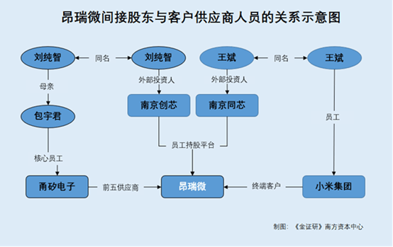 即在高华、李伟峰作为外部投资人,一同入股昂瑞微员工持股平台南京同芯。这背后,深圳麦瑞思控股股东李伟峰、和盈电子股东高华,又恰好与名为王晓丽的人员存在交集。 4.6 高华系和盈电子少数股东,王晓丽与和盈电子的终端客户存共同投资 上述提及,2017年8月,王晓丽、高华一同变更成为和盈电子少数股东,后王晓丽于2025年7月退股。截至查询日2025年11月12日,高华持有和盈电子15%股权。 据市场监督管理局数据,截至查询日2025年11月12日,和盈电子的经营范围为电子物料及周边材料购销、国内贸易、经营进出口业务。 据上海芯导电子科技股份有限公司(以下简称“芯导科技”)上市申报文件,报告期内2018-2020年及2021年1-6月,和盈电子系芯导科技TVS产品的经销商客户。和盈电子采购的TVS产品应用于手机、IoT、穿戴设备。 另外,歌尔微电子股份有限公司(以下简称“歌尔微”)上市申报文件显示,2023年1-6月,和盈电子系歌尔微经销商,歌尔微主要向和盈电子销其他MEMS传感器、消费电子麦克风产品,前述产品对应的终端客户主要为深圳市天珑移动技术有限公司(以下简称“天珑移动”)、四川易景智能终端有限公司。 据市场监督管理局数据,深圳市珑莹咨询合伙企业(有限合伙)(以下简称“深圳珑莹”)2021年12月10日设立,截至查询日2025年11月12日,由诺富投资、深圳市慧珑科技有限公司(以下简称“慧珑科技”)各持股50%。 其中,慧珑科技系天珑移动的全资子公司。 而前述提及,诺富投资的股东包括刘孝福、王晓丽,其中刘孝福系和盈电子持股85%的股东。 也就是说,和盈电子或主要从事电子材料及电子产品的经销、贸易业务。而和盈电子控股股东刘孝福,以及王晓丽等人通过诺富投资,与天珑移动全资子公司慧珑科技共同投资深圳珑莹。而天珑移动系和盈电子的终端客户之一。 值得一提的是,天珑移动官网显示,截至查询日2025年11月12日,其主要提供智能手机等消费电子产品ODM服务。 据签署于2025年10月15日的招股书,昂瑞微主要从事射频前端芯片、射频SoC芯片及其他模拟芯片的研发、设计与销售。其中,射频前端芯片下游应用领域主要为智能手机终端,并正在重点拓展智能汽车领域。射频SoC芯片下游应用领域主要为无线外设、智能家居等消费类应用和健康医疗、智慧物流、智能零售、智能表计等专业类应用。 简言之,天珑移动、深圳麦瑞思、深圳佳润鑫等企业,或与昂瑞微处于同一产业链,其中,深圳麦瑞思、深圳佳润鑫从事的业务或存重叠,均涉及手机及智能穿戴。而昂瑞微射频前端芯片下游应用领域主要为智能手机终端。此外,名为李伟峰、高华、王晓丽的自然人等背景牵涉天珑移动、深圳麦瑞思、深圳佳润鑫等企业。与此同时,昂瑞微员工持股平台均存在名为李伟峰、高华合伙人,且为外部投资者。基于上述情形,昂瑞微的外部投资股东,与前述企业之间关系或值得关注。 五、结语 此番上市,报告期内,昂瑞微营收保持增长的另一面,其净利润却连续告负,且近三年一期合计亏损超8亿元。2017年8月起,原实控人杨清华及其控制的企业贵州汉天下逐步转让其持有昂瑞微股份,截至2022年2月已转让所持有的昂瑞微全部股权。需要指出的是,贵州汉天下、苏州汉天下是昂瑞微原实控人杨清华控制的企业。而昂瑞微称,苏州汉天下主营产品以BAW滤波器为主,而与昂瑞微射频前端芯片业务存差异。而这背后,苏州汉天下官网称其核心产品为滤波器及射频前端模组芯片。 值得注意的是,昂瑞微因多名外部人员通过员工持股平台入股被问询,称入股价格公允未参与股权激励,并且,昂瑞微表示,除苗俊涛外的外部人员均与昂瑞微的客户及供应商无关联。而上述外部人员之一刘纯智,与供应商甬矽电子核心员工包宇君之母刘纯智“同名”,另一外部人员王斌与客户小米的员王斌“同名”。 发行前,实控人钱永学控制的北京鑫科系瑞昂微第一大直接股东。回溯历史沿革,国资企业展讯通信2015年入股昂瑞微,而后在2017年11月退股。这背后,北京鑫科受让原国资股东展讯通信所持股权,半年后北京鑫科对外转让股权,该次股权转让价格或系北京鑫科受让展讯通信所持昂瑞微股权价格的一倍。 值得一提的是,南京同芯合伙人包括李伟峰、高华,两人均系外部投资人。2016年12月,李伟峰通过昂瑞微员工南京同芯持股平台入股昂瑞微,其为南京同芯第一大合伙人。而同名的“李伟峰”的相关企业或曾系展讯通信的战略客户,并曾与昂瑞微一同拜访昂瑞微供应商。据昂瑞微申报文件披露,展讯通信则或曾是昂瑞微的大客户。除此之外,同名的“高华”的相关企业或系昂瑞微所处产业链的下游,且高华、李伟峰均与自然人王晓丽或存“交集”。