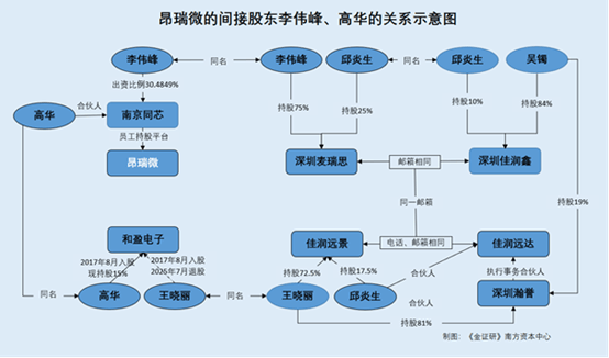 4.5 南京同芯合伙人包括高华,而高华、李伟峰均与自然人王晓丽或存“交集” 上述提及,2016年12月,外部投资人李伟峰、高华等通过员工持股平台南京同芯入股。 据签署于2025年10月15日的招股书,截至签署日,高华亦是外部投资人,持有员工持股平台南京同芯12.747万元出资额,出资比例为2.345%。 据市场监督管理局数据,2017年3月3日,深圳市和盈电子有限公司(以下简称“和盈电子”)由周铁、吴辉、张小娟共同出资设立,同年5月19日股东变更为吴辉、张小娟,8月28日变更为张小娟、高华、王晓丽,三人分别持股60%、20%、20%。 2019年4月22日,张小娟持有的和盈电子60%股权转让给戴艳花。2021年5月27日,高华将持有的和盈电子5%股权转让给戴艳花,对和盈电子持股比例降至15%。2025年7月24日,戴艳花、王晓丽分别将持有的和盈电子65%、20%股权转让给刘孝福,退出和盈电子。 即2017年8月,王晓丽、高华一同变更成为和盈电子少数股东,后王晓丽于2025年7月退股。 截至查询日2025年11月12日,和盈电子由刘孝福、高华分别持股85%、15%。 此外,据市场监督管理局数据,2021年10月11日,深圳市诺富科技有限公司(以下简称“诺富科技”)由深圳市富悦电子有限公司(以下简称“富悦电子”)单独出资设立。数日后即同年10月18日,诺富科技变更为由富悦电子、和盈电子分别持股80%、20%。2023年6月5日,诺富科技完成注销。 截至查询日2025年11月12日,富悦电子系由张国良、胡巧宏分别持股90%、10%。 2022年4月6日,深圳市诺富电子投资企业(有限合伙)(以下简称“诺富投资”)注册设立,截至查询日2025年11月12日,由刘孝福、罗叶、胡巧宏、曹家绮、王晓丽各自持股20%。 基于上述多家企业的持股关系,高华与名为王晓丽的自然人或存交集。 而与名为王晓丽的自然人或存交集的,还有深圳麦瑞思的李伟峰。 据市场监督管理局数据,2023年,深圳市佳润远景企业管理合伙企业(有限合伙)(以下简称“佳润远景”)、深圳市佳润远达企业管理中心(有限合伙)(以下简称“佳润远达”)、深圳市瀚誉科技有限公司(以下简称“深圳瀚誉”)的企业联系电话均为13*******19,企业电子邮箱为23*****16@qq.com。2024年,佳润远达、深圳瀚誉亦使用前述联系方式。而佳润远景2024年的企业电子邮箱为liuyanqing@caron-tech.com。 需要指出的是,caron-tech.com系深圳佳润鑫官网的域名。 此外,截至查询日2025年11月12日,佳润远景的企业通信地址为深圳南山区波顿科技园二期A1405,佳润远达通信地址则为波顿科技园二期A1404。 据市场监督管理局数据,佳润远景于2023年7月20日注册成立,截至查询日2025年11月12日由王晓丽、邱炎生、何珍玉分别持股72.5%、17.5%、10%。 此外,佳润远达成立于2021年5月25日,截至查询日2025年11月12日执行事务合伙人为深圳瀚誉,合伙人包括吴奥城、邱炎生、游冰、王帅、瀚誉科技。深圳瀚誉成立于2021年5月20日,截至查询日2025年11月12日由王晓丽、吴镯分别持股81%、19%。 不难看出,深圳麦瑞思由李伟峰、邱炎生分别持股75%、25%,其与吴镯控股的深圳佳润鑫共用联系方式且地址毗邻。2023年,佳润远景、佳润远达、深圳瀚誉共用企业联系电话及电子邮箱,其中所用电子邮箱与深圳麦瑞思、深圳佳润鑫2023年所用电子邮箱一致。且佳润远景、佳润远达、深圳麦瑞思、深圳佳润鑫企业通信地址均位于深圳南山区的波顿科技园二期A1栋4楼。可见,深圳麦瑞思的股东李伟峰,与名为王晓丽的自然人或也存交集。