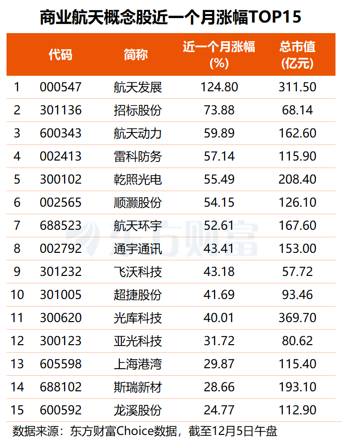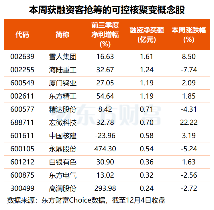 A股三大股指早盘全线上涨,截至午间收盘,沪指涨0.08%,深成指涨0.39%,创业板指涨0.47%。两市半天成交不足万亿元,较昨日同期缩量393.64亿元;全市场超3500股飘红,53股涨停,封板率为75.71%。 板块方面,贵金属、CPO、超导、商业航天、福建板块等涨幅居前,医药板块全线回调,银行、地产、公用事业等板块表现疲弱。 ![]() 可控核聚变、超导概念早盘双双走强,长光华芯20cm涨停,宝胜股份、永鼎股份、国机重装等封板,西部材料、国缆检测、冰轮环境、西部超导等多股跟涨。 消息面上,12月4日,中法签订《中国国家原子能机构和法国原子能和替代能源委员会第十五个和平利用核能合作议定书》。根据合作议定书,双方将加强核基础研究、核技术应用、核聚变技术、第三国核能市场开发、核燃料循环与放射性废物管理、核安保与核应急、核专业人才培养等合作。 此外,核聚变科技成果转化对接活动近日在京举办,17个项目进行现场路演,同步开展业务洽谈。核聚变中心、中国科学院合肥物质科学研究院、核工业西南物理研究院等8家单位签署3项战略合作协议。 超导方面,主要与近日取得的科研突破有关。 据新华网报道,近期我国科学家开发了一种新镍基超导体,创下了该类材料超导转变温度的最高纪录。该研究由北京高压科学研究中心的曾桥石研究员团队与山东大学的张俊杰教授团队合作完成。“这是镍基超导材料首次逼近‘百K超导’,为探索更高温超导材料奠定了重要基础。”曾桥石说。随着科学家在高温超导领域不断突破,常温下实现超导有望从科幻走入现实。 中国科学院电工研究所科研团队近日在大口径高场通用超导磁体技术方面取得突破。电工研究所团队成功研制出中心磁场强度高达16.5特斯拉、内孔直径达150mm大口径高场通用超导磁体。 华泰证券表示,全球核聚变试验装置投产加速,高温超导技术应用比例显著上升。三到五年内,核聚变发展有望撬动高温超导带材每年数十亿元的市场规模。 中金公司研报指出,可控核聚变作为清洁基荷能源,不仅能支撑高耗能产业降碳升级,还可衍生多领域应用,当前产业链上中下游协同突破,核心材料、关键设备与集成设计环节技术成熟度持续提升,为商业化奠定基础。建议重点关注超导线缆、激光器、传感监测与控制系统等上下游产业链投资机会。 ![]() 商业航天概念股早盘延续活跃,超杰股份20cm涨停,上海港湾、天箭科技、航天科技等多股封板。 消息面上,12月3日,朱雀三号重复使用运载火箭成功发射,进入预定轨道。本次任务虽未实现预定火箭一级回收目标,但检验了朱雀三号运载火箭测试、发射和飞行全过程方案的正确性、合理性,各系统接口的匹配性,获取了火箭真实飞行状态下的关键工程数据,为后续发射服务、子级可靠回收可重复使用奠定了重要基础。 此外,我国首艘火箭网系回收海上平台“领航者”近日成功交付,该平台是可重复使用运载火箭技术链条的重要组成部分,将助推火箭回收从技术验证迈向工程应用。 长江证券指出,朱雀三号是我国首个进行可回收尝试的大型火箭,我国商业航天后续有望迈入高速发展阶段。考虑到我国在大推力可回收领域具备后发优势,若假设3年内可完成首飞-商用,则我国卫星互联网有望在2028年实现发射成本的大幅下降。 西部证券表示,结合近期卫星互联网政策、商业火箭首飞排期和核心产业链企业订单变化,我国卫星互联网和商业航天产业有望在明年迎来基本面拐点,坚定看好。 ![]() 福建板块早盘持续走高,红相股份、龙洲股份、安记食品、闽发铝业、舒华体育等近20股涨停。 消息面上,福建省近日再推12条惠台利民政策措施,包括支持台企台商发展、优化台胞台企办税服务、推进对台商贸文旅交流合作等。 此外,福建省唯一涉海涉渔全产业链国有企业——福建省蔚蓝海洋集团有限公司近日正式亮相,该集团是“创新型、外向型、链主型”现代海洋产业投资控股集团,未来将成为福建推进海洋经济高质量发展的主要抓手。 光大证券指出,在“政策红利释放+产业升级+两岸融合”三重驱动下,福建板块整体受益,估值有望提升。可关注与数字经济、AI、两岸融合有关的标的。