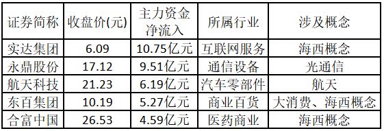 (注:创出近一年新高的涨停股,说明该股走出重要突破行情,值得重点关注。) 从主力资金来看,今日涨停板个股中,主力资金净流入金额排名前5的个股分别为实达集团、永鼎股份、航天科技、东百集团、合富中国。欢迎大家关注微信公众号“道达号”,其“道达涨停复盘”栏目为大家解读。