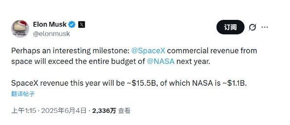 推动SpaceX估值飙升的动力主要来自其在航天及通信领域的统治地位。 作为全球最高产的火箭发射商,SpaceX凭借Falcon 9火箭主导了商业卫星和载人航天发射市场,并正在开发更强大的Starship运载工具,旨在承载月球乃至火星任务。 与此同时,投资者认为卫星业务是推高估值的关键引擎。 SpaceX的业务主要包括发射火箭和卫星互联网两部分。许多投资者表示,公司的卫星业务是其高估值的主要推动力。目前“星链”卫星互联网部门在太空中部署了约9000颗卫星。公司上个月曾表示,其全球活跃用户超过800万。 营收方面,马斯克今年6月曾透露,预计今年营收为155亿美元。
