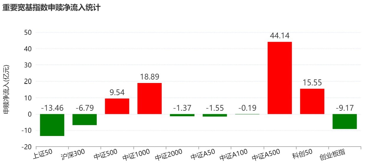 蜂拥进场!主力坐不住了 这个板块正吸引ETF资金大量买入! 炒股第一步,先开个股票账户 本周股指普涨,沪深两市股票型ETF和跨境型ETF合计净流入109.97亿元。 从行业主题上看,人工智能、芯片等ETF被资金看好,而银行、化工相关ETF被资金抛售。 逾100亿资金借道ETF进场 本周沪深两市成交8.41万亿元,其中沪市成交3.4万亿元,深市成交5.01万亿元。截至最新收盘,沪指报收于3902.81点,全周上涨0.37%,深证成指报收于13147.68点,全周上涨1.26%。 数据显示,本周沪深两市股票型ETF和跨境型ETF合计净流入109.97亿元,跨境ETF净流入79.77亿元,行业主题ETF净流出38.6亿元。 ![]() 细分来看,主要宽基指数整体资金申赎统计显示,本周中证500净流入44.14亿元,上证50净流出13.46亿元。 ![]() 具体ETF方面,规模较大的10只宽基指数ETF本周合计净流入9.47亿元,其中科创50ETF净流入12.98亿元,上证50ETF净流出13.04亿元。 ![]() 本周主要指数相关ETF表现 12月5日,国家金融监督管理总局发布《关于调整保险公司相关业务风险因子的通知》,对保险公司相关业务风险因子进行下调。 有分析人士认为,调整后的风险因子有助于优化保险公司的资本配置,增加其对资本市场的长期投资力度,并为实体经济提供更多资金支持。同时,这一政策也为保险公司提供了更大的经营灵活性,有助于提升行业的整体竞争力。