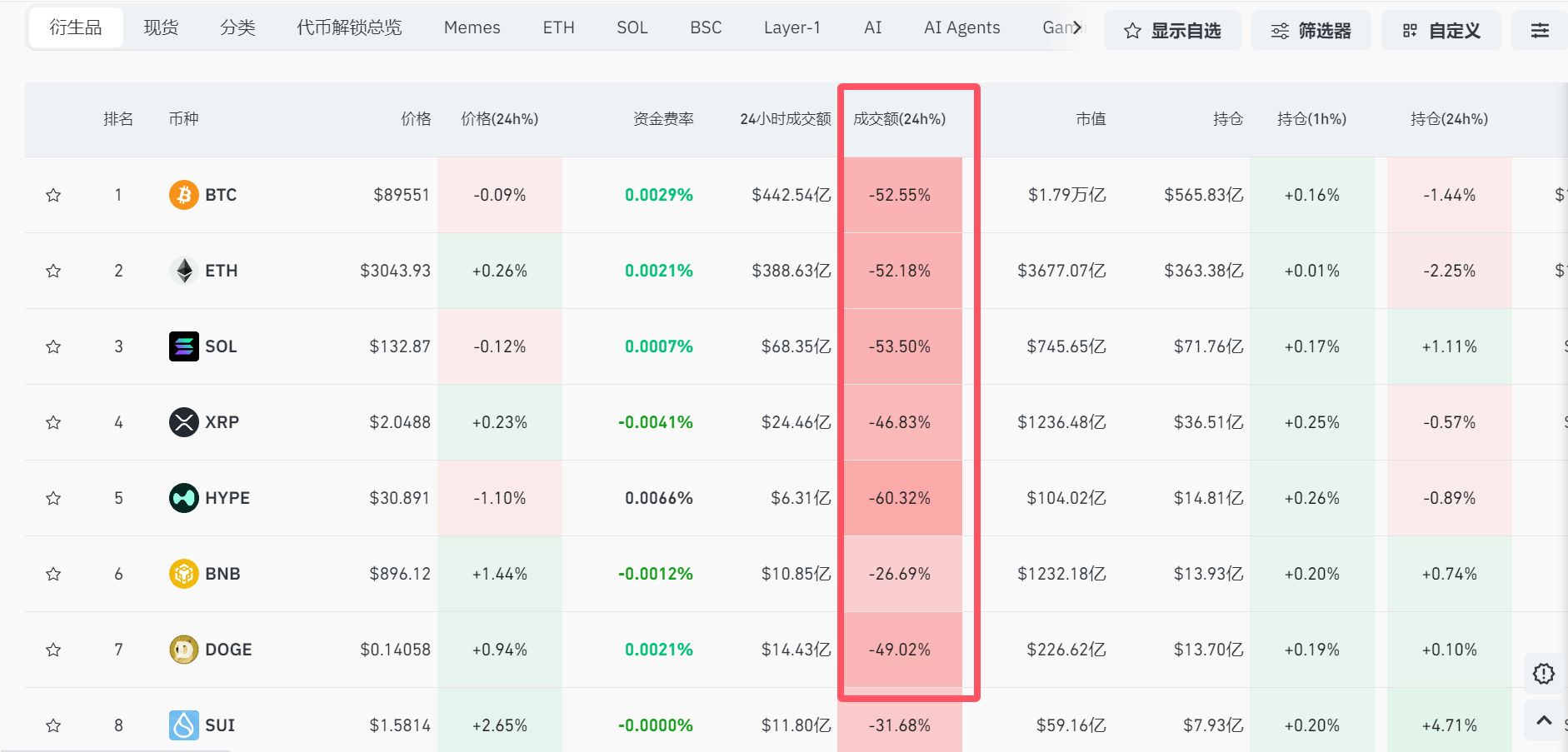 每经编辑|毕陆名 时近年末,比特币价格震荡加剧。 12月7日上午,比特币一度向下跌破89000美元,而在6日晚它曾向上触及9万美元。截至发稿,加密货币市场涨跌互现,主要品种成交额全线大幅下跌,近24小时内,比特币、以太坊、SOL等主要品种成交额均腰斩,跌超50%。