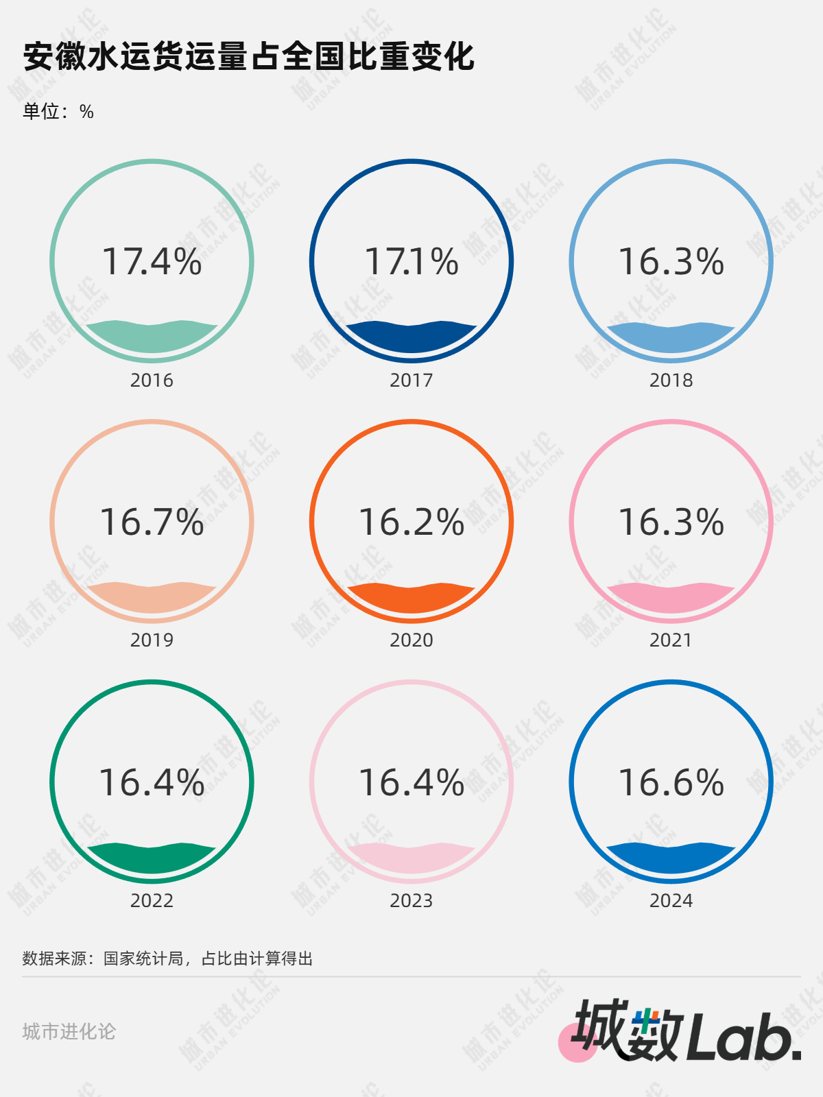 为什么是安徽? 从内河水运条件看,安徽自北向南分布有淮河、长江、新安江三大水系,全国内河高等级航道中有“一纵两横一网”覆盖安徽。2023年江淮运河全线贯通,彻底改写安徽水运格局的同时,也进一步巩固其水运大省地位。