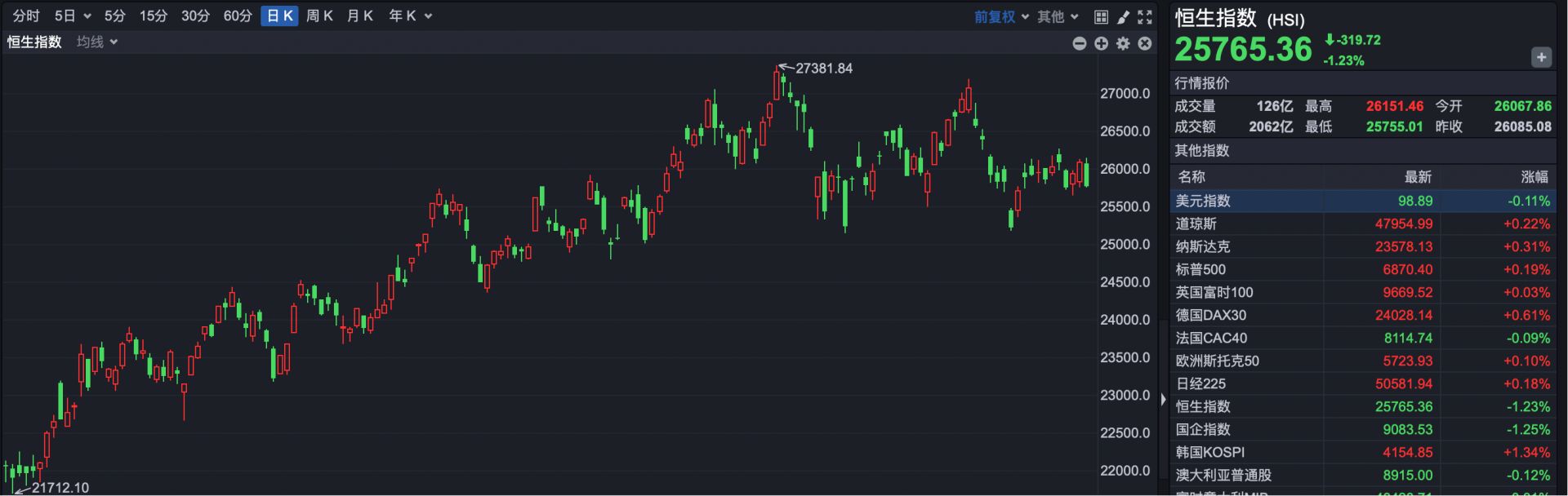 每经记者|曾子建 每经编辑|袁东 12月8日,港股市场弱势调整。 截至收盘,恒生指数报收于25765.36点,下跌319.72点,跌幅1.23%。
