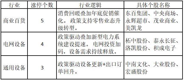每经记者|闫峰峰 每经编辑|何建川 各位投资者,大家好。 涨跌停板数据,不仅是反映板块和个股强弱的重要指标,更是体现市场情绪与资金流向的重要参考。那么,今日的涨停个股有哪些特点呢?哪些涨停股又值得重点关注?欢迎大家关注微信公众号“道达号”,其“道达涨停复盘”栏目为大家解读。 今日,上证指数收盘下跌0.37%,深证成指下跌0.39%。沪深A股涨跌幅中位数为下跌0.95%。 涨停板方面,今日涨停股个数减少数量较多,不过涨停风格仍然延续,涨停股数量居前的板块仍是福建、大消费和航天板块。创出近1年新高的涨停股中,更是有半数属于福建板块。 值得注意的是,今日主力资金净流入金额前两名的个股均属于航天板块,分别为雷科防务和航天机电。 消息面上,据海南文昌国际航天城消息,年产1000颗卫星的超级工厂即将投产,可实现“卫星出厂即发射”的无缝衔接。目前20余家产业链上下游企业已签约落户,火箭研发、卫星制造、发射测控的全链条生态日趋完善。 一、市场总览及板块特征 沪深两市(不含ST个股)涨停53家,较昨日减少21家;跌停7家,较昨日增加5家。 从行业特征来看,今日涨停板个股中,商业百货、电网设备和通用设备行业的个股最多。