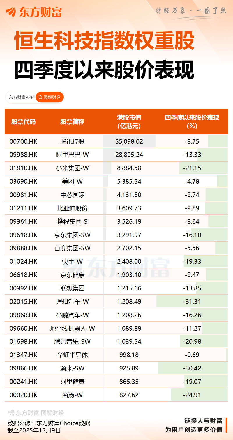 恒指牛证,跌麻了! 在A股表现尚可的背景之下,港股市场连续两个交易日杀跌。12月9日午后,香港恒生指数跌幅扩大至1%,恒生科技指数跌幅扩大至2%。与此同时,恒指牛证出现大面积巨幅杀跌,恒指法兴八七牛U大跌超77%,成交过百万港元的恒指汇丰八十牛V、恒指摩通八九牛K等跌幅都超过了74%。 那么,究竟是何缘故导致港股市场走势偏弱?有投资人士向券商中国记者表示,最近港股市场受外围影响较大,外围国债市场近期持续杀跌,加上市场对于美联储鹰派降息存有较大预期,港股流动性可能受到了压制。另有研究机构认为,12月19日,若日本央行加息,或导致产生潜在的日元套息交易平仓风险,间接影响港股。 集体暴跌 港股最近走得比较弱。9日午后,恒生指数跌幅扩大至1%以上,恒生科技跌幅扩大至2%以上。恒指系列牛证集体暴跌。 ![]() 从市场结构来看,港股市场新消费概念股今天再度集体走低,泡泡玛特、布鲁可跌超4%,达势股份、老铺黄金、锅圈跌超3%,茶百道、卫龙美味跌超2%。芯片股午后走低,天域半导体跌近5%,华虹半导体、中芯国际等跟跌。知名港股中,信义玻璃、中国铝业、东方甄选、华虹半导体、中国建材、紫金矿业等跌幅都比较大。 有投资人士认为,最近港股市场的流动性可能有所扰动。基于可用数据粗略统计,平均每日成交额约195.1亿港元,较11月的230.7亿港元下降15.4%。这反映短期市场波动,可能受全球经济不确定性影响。 从全球范围来看,最近扰动权益市场的变量主要来自国债市场。昨晚和今天亚太市场,主要经济体的国债都出现了较大幅度杀跌。而日本国债在有关官员喊话之后,出现了反弹。但日本10年期国债收益率仍达到了1.96%以上。 日本经济团体联合会(经团联)主席筒井义信周一发出严厉警告,强调2%收益率是“关键里程碑”,呼吁政府全力维护市场信任。历史数据显示,自1997年以来,日债收益率从未在2%上方长期站稳。随着利率预期持续升温,日本债市正面临20多年来最严峻考验。 另一方面,市场对美联储鹰派降息预期升温。市场倾向于认为,决议将伴随鹰派基调,暗示明年可能延长暂停降息。掉期市场显示的终端利率已从不到3%跳升至3.2%,为7月以来最高水平。 影响多大? 对于港股来说,当前的估值可能是有吸引力的。但东吴证券认为,港股短期还处在左侧阶段,反弹还需等待。 其一,市场预计12月美联储会降息,但如果采取鹰派降息,港股反弹力度可能不及预期。 其二,市场已对中央经济工作会议进行前瞻,当前投资者态度相对中性。若会议内容超预期,市场会反弹。 其三,从中长期看恒生科技当前具有配置意义,AI科技龙头估值处在合理区间,一旦有新催化,资金启动,恒生科技会有明显反弹。 其四,12月19日,若日本央行加息,或导致产生潜在的日元套息交易平仓风险,间接影响港股。日本央行行长已发出明确信号12月加息。日元走强,日本债券收益率明显快速上升迹象,叠加12月美联储降息,美日利差收窄,很有可能会引发套息交易平仓。 日本央行行长植田和男今日午后表示,如果经济前景实现,将提高利率。积极收集有关工资势头的信息。将在12月会议上做出适当决定。长期债券收益率应由市场决定。日本的实际利率非常低。不对利率具体细节发表评论。近期长期利率上升速度相当快。若长期利率出现剧烈波动,将增加日本国债购买量。