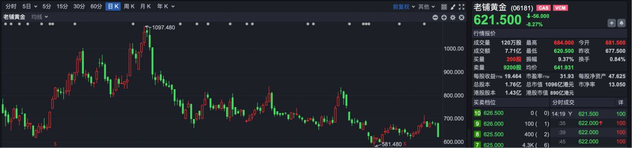 消息面上,今天确实有利空。据报道,摩根士丹利近期对泡泡玛特发布最新报告,指出泡泡玛特正在从过去两年的“爆发式增长”阶段,过渡到未来的“可持续增长”阶段。该机构预测,泡泡玛特2026年Labubu的收入增速将显著放缓,增长引擎将由单一爆款转向非Labubu IP的多元化驱动。 摩根士丹利的担忧,实际上笔者在今年9月份就已经有过。当时,我在本栏目中说过,泡泡玛特此前的成功,在于Labubu这一超级IP的横空出世。但反过来看,弊端也很明显。超级IP存在一定生命周期,消费者也会审美疲劳。因此,如果泡泡玛特短期内难以找到新的超级IP取代Labubu,那么必然会面临高速增长难以持续的问题。 这是一个很现实的问题,对企业本身来说,允许用足够长的时间去培育新的“Labubu”,但对资本来说,可能就没有足够的耐心来等待了。 新消费板块确实是今年港股最大的亮点之一,但泡泡玛特都如此表现,其他公司能好到哪儿去?除了泡泡玛特外,老铺黄金够牛吧,今年一度股价突破1000港元,成为港股最高价公司。现在,虽然股价依然是最高的,但已经跌到了600多港元。而今天,老铺黄金盘中跌幅也超过8%,高点跌下来的累计跌幅也超过40%。