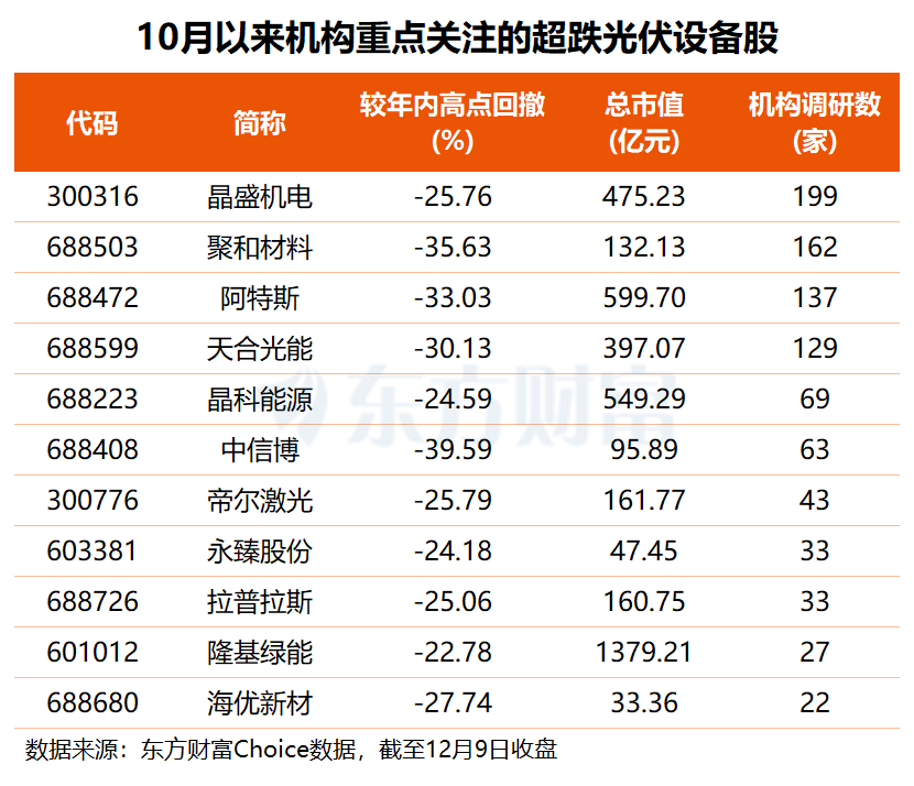 光伏行业长期酝酿的产能优化行动或已进入实质性阶段。 光和谦成已注册成立 12月9日盘中,有消息称,光伏行业为推进“反内卷”筹备多时的“多晶硅平台公司”已注册成立,名称为北京光和谦成科技有限责任公司。 据媒体向多晶硅业内人士求证,光和谦成的主要业务是为行业内主要企业探索潜在战略合作机会,如技术升级、市场拓展、产能与成本优化等。就该公司是否为“多晶硅产能整合收购平台”主体,多晶硅业内人士并未直接回应。 企查查平台最新显示,北京光和谦成科技有限责任公司确实已于12月9日成立,法定代表人为侯一聪,企业类型为有限责任公司(外商投资企业与内资合资),经营范围包括技术服务、技术开发、技术咨询、技术交流、技术转让、技术推广;企业管理咨询。 ![]() (来源:企查查) 多晶硅收储平台筹划已久 建立多晶硅收储平台被视为光伏行业“反内卷”背景下的重要举措。 据悉,所谓多晶硅收储平台,即由光伏行业头部多晶硅企业共同成立联合体,旨在通过收购并淘汰落后产能,以缓解行业产能过剩和低价“内卷式”竞争。 在今年10月下旬播出的央视财经频道《经济半小时》节目中,协鑫集团董事长朱共山提到,已有17家企业签字基本同意搭建联合体,预计于2025年内完成。 紧接着有市场消息传出,通威、协鑫等11家多晶硅厂商实控人10月31日齐聚上海,召开长达一整天的高层会议,就产能整合联合体的股权分配、资金筹集、责任划分等核心细节进行最终确认。 11月中旬,面对收储进度相关的各方传闻,中国光伏行业协会执行秘书长刘译阳在朋友圈发文,坚定重申中国光伏行业“反内卷”的决心。 通威集团董事会主席刘汉元也指出,欧佩克(石油输出国组织)的成功经验值得我国处于“内卷式”竞争的行业同仁思考和借鉴。“尽管(进展)低于预期,但目前为止,我们对通过行业自律来实施有效整合仍充满信心。” 值得注意的是,截至12月8日,多晶硅现货报价为5.2万元/吨,较今年7月约3.47万元/吨的低点上涨约50%。 业绩改善机构看好潜在机会 光伏行业亏损情况正明显好转。 东方财富Choice数据显示,今年第三季度,光伏板块实现营收1403亿元,同比下降6%,环比下降5%;实现归母净利润-11亿元,同比、环比均显著回升,亏损幅度较前两个季度进一步收窄。 在21家光伏主产业链上市公司中,14家企业第三季度归母净利润环比实现正增长,硅料环节盈利修复最为明显。其中,大全能源实现归母净利润0.73亿元,成功扭亏为盈;通威股份归母净利润亏损3.15亿元,同比、环比均显著减亏。 中金公司表示,近期平台公司即将成立的信息逐渐增多,看好“反内卷”落地+高功率组件比例提升,带来2Q26 板块集体修复的潜在机会。 中原证券也认为,后续围绕“反内卷”的产品价格销售措施、企业间并购整合、行业准入门槛的提高以及产品质量标准提高的影响将会逐步显现。光伏行业竞争格局和产业链生态有望优化,存量光伏企业业绩将呈逐步改善趋势。 开源证券最新研报指出,在供需两端“反内卷”的推进下,产业链供需关系有望迎来快速修复,并推动组件价格抬升。具备阿尔法的标的在行业贝塔修复中具备更大弹性。 这些超跌概念股获机构密集调研 东方财富行业板块显示,目前A股市场共有78只个股属于光伏设备板块,合计总市值1.74万亿元。 今年以来,超七成光伏设备概念股的股价实现上涨,但有44股的最新价已较年内高点回撤超20%。东方财富Choice数据显示,在这些超跌个股中,*ST沐邦的超跌幅度居首,最新价较年内高点大跌60%;首航新能、海泰新能、钧达股份等3股的调整幅度均超40%。 自10月以来,上述44只超跌光伏设备概念股中,有18股获得机构调研,其中11股机构调研数超20家,晶盛机电、聚和材料、阿特斯、天合光能均获超百家机构密集调研,晶科能源、中信博的机构调研数也在60家以上。 天合光能是光伏一体化头部企业,民生证券研报指出,公司深耕TOPCon多年,产品效率行业领跑,在供给侧改革的背景下,后续行业落后产能有望迎来加速出清,天合的高效率组件产品市占率有望迎来进一步提升。 晶科能源第三季度毛利率环比提升4.77个百分点,主要得益于高功率组件出货占比提升、美国及中东高溢价市场订单增加。前三季度,公司实现光伏组件出货量61.85GW,稳居全球第一。国盛证券指出,基于公司组件龙头地位、行业处于加速出清阶段等因素,预计公司2025-2027年归母净利润分别为-44.73亿、23.55亿和42.33 亿元。 ![]()
