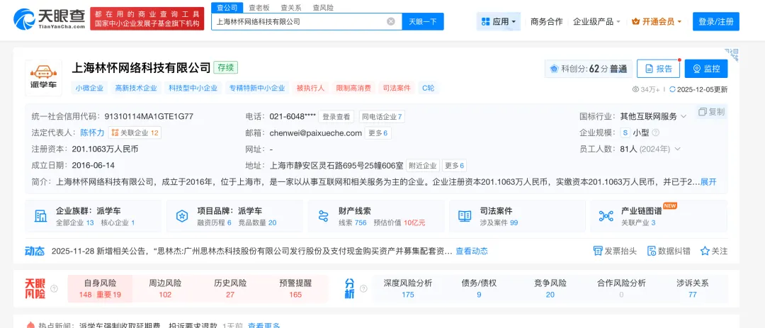 起底互联网驾校“派学车”:低价引流藏陷阱、拖欠驾校带教费 公司被执行超四千万元 炒股第一步,先开个股票账户 原本三千多报名的驾校课程,最后花了七千才拿到证? 近期,多地驾校学员向记者反映,一家名为“派学车”的互联网驾校平台存在虚假宣传、套路合同、层层收费等乱象,不少学员从报名到拿证累计花费两倍多,远高于市场平均价格。 约课难、服务差、收费层层加码 派学车低价引流藏陷阱 “报名时明确说好是一次性收费3000元,后续再没有任何费用。结果现在想约课,却告诉我必须再交1500元续期服务费。”学员徐女士向记者讲述了她在“派学车”的经历。 ![]() 她于2024年通过电商平台购买了该平台的驾校培训课程,当时销售人员对服务期限等关键条款只字未提。今年当她试图继续学车时,才被告知需要额外付费。 在“派学车”遇到类似情况的学员并非个例。有学员表示,在购买服务前销售明确表示服务有限期为三年,结果在期限内还是被要求续费才能学习。 除了涉嫌虚假宣传之外,约课难是学员们集中投诉的另一个问题。有学员反映,平台预约小程序长期显示“已约满”或“系统维护”,连续多周无法成功预约一节课。甚至在学车过程中,课程需要抢,抢不到课时客服只表示人操作不够快,与平台无关。 ![]() 另有学员表示,曾尝试直接联系教练,却始终得不到回复。然而,当一年的服务期刚过,平台客服便会主动联系学员,催促其缴费续约。不少学员认为,这并非系统或服务问题,而是平台有意采取的“拖延战术”,旨在迫使学员为延续服务支付额外费用。 蓝鲸记者了解到,部分学员因日常工作安排紧张,加上平台长期预约困难,为避免此前已投入的时间和费用“打水漂”,只得选择继续缴费。其中一位学员向记者表示,其累计花费已超过七千元,远高于当地驾培市场的普通收费标准。 社交媒体上,派学车遭到大量学员投诉,小程序上也出现了多次被投诉的提示。 ![]() 实探派学车现场: 门店简陋、大门挂无人机广告,客服称续费条款已修改 官网显示,派学车隶属于上海林怀网络科技有限公司(下称林怀网络),是一家全国连锁的自营品牌驾校,直营驾照培训。通过线上线下融合模式为驾考学员提供全场景培训服务。 平台整合场地、车辆及教练资源,推出“AI教学”和“VR学车”智能培训体系,业务范围覆盖上海、广州、深圳、重庆、成都五大城市,累计设立百家校区,服务学员10万人次。 该公司通过各种线上平台招收学员,包括京东、淘宝、美团。 针对上述学员遇到的续费问题,蓝鲸记者以学员的身份咨询派学车的工作人员,对方解释称:“报考学籍有效期是从你考完科目一算起的,未来3年之内有效。没有考科目一是一直有效。但是我们现在服务周期是一年,你需要在一年以内考完,如果一年以内没有考完的话,是需要付延期费的。” 随后,蓝鲸记者以学员身份前往派学车当地门店咨询。现场发现,该门店空间狭小、设施简陋,大门处不仅未标注“派学车”或运营方“林怀网络”的公司名称,反而张贴着其他机构的无人机培训广告。 ![]() 值得注意的是,在学员签约环节,所提供的合同文本中,签约主体并非林怀网络,而是另一家名为“昌维驾驶员有限公司”的企业。 工作人员解释称:“林怀是全国品牌名称,我们在广州、深圳等一线城市都有合作驾校。” 当被问到有学员反馈延期续费的问题时,工作人员说道:“延期续费条款有修改过,其他和旧版都是一样的,现在最新版都是一年的合同,到期是需要续费的。” 资质缺失、投诉缠身、拖欠驾校费用 公司被执行金额超四千万元 天眼查app显示,林怀网络法定代表人为陈怀力,注册资本201万元,公司成立至今融资轮次已达到C+轮,投资方包括真格基金、青松基金、君联资本等知名机构。 ![]() 今年7月,公司法定代表人为陈怀力已被限制高消费,公司被执行总金额超过4000万元,涉及司法案件多达80多起,其中主要是与学员之间的服务合同纠纷。 ![]() 在黑猫投诉平台上,有关派学车的投诉多达970条,其中多为虚假宣传、追加收费、售后服务差等问题。 早在2019年,派学车公司以自己名义招收学员,收取费用,自行聘请教练员,开展科目二、科目三的培训,但平台因未取得《道路运输经营许可证》,未经许可擅自从事机动车驾驶员培训,被深圳市交通运输行政执法支队处罚,并责令改正。 由此可见,该平台自身并无驾校培训资质,实际通过与各地驾校合作完成培训流程。蓝鲸记者了解到,“派学车”系该平台过往使用名称,目前其业务已改为“圆考智能”等名字继续开展运营。 据上海市道路运输管理局中心发布的驾校投诉表显示,改名后,平台及合作驾校依旧常年位列投诉榜单前列。 ![]() 值得注意的是,不止是学员面临多次缴费的困境,就连合作驾校也反映存在被拖欠费用的现象。蓝鲸记者了解到,多家曾与平台合作的驾校表示,平台未能按时支付带教费用。其中一家驾校负责人透露:“截止到9月30日,平台已拖欠我单位带教费用,我们不得不终止与平台的合作关系。” 这一情况直接影响了已在平台付费的学员。由于驾校终止合作,部分学员虽已缴费却无法正常安排训练课程。 相关部门提示,如今“网络招生平台”“低价”“熟人推荐的教练”“微信转账给教练”已成为投诉中出现频率较高的关键词。学员在报名时应前往正规驾培