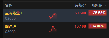 今日两只新股上市,图达通涨34%,宝济药业涨超125%。特殊目的公司TechStarAcquisition Corporation(股票代码:“7855”)与Seyond Holdings( 图达通 )完成合并, 图达通通过特殊目的公司合并的方式在港交所上市作为第三家成功以SPAC方式登陆港交所的上市公司,图达通合计募集资金约10.27亿港元。