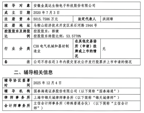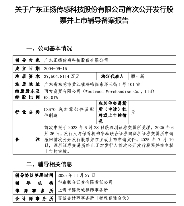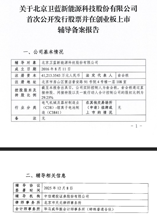 12月11日,证监会网站披露,北京卫蓝新能源科技股份有限公司、广东正扬传感科技股份有限公司、全芯智造技术股份有限公司、安徽金晟达生物电子科技股份有限公司已启动A股IPO辅导。