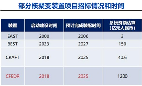 可控核聚变板块12月11日早盘强势拉升,早盘收盘时华菱线缆、雪人集团、永鼎股份纷纷涨停;天力复合大涨超10%;哈焊华通、精达股份、常辅股份等也涨幅靠前。 四大设施投资规模超1300亿? 可控核聚变的持续强势,与国内可控核聚变领域的不断突破密不可分。就国内几个关键的可控核聚变设施来看,在研究机构来看,未来的投资空间就十分值得期待。 对有“中国可控核聚变天团”之称的EAST(全超导托卡马克核聚变实验装置)、BEST(紧凑型聚变能实验装置)和CRAFT(聚变堆主机关键系统综合研究设施)来说,爱建证券日前的研报估算,合计投资金额约为193.6亿元。 而CFEDR(中国聚变工程示范堆)的设备需求将呈现建设周期更长、建设强度更高、投入节奏更连贯的特点。爱建证券认为,相比BEST,CFEDR的定位已从实验堆转为真正能产生电能的聚变示范堆建设,对系统部件提出大型化和高参数要求。结合ITER的典型建设周期,并参考CFEDR“2030年启动建设、2035年前完成建设、2050年开展试验”的总体规划,在投资体量上,我们估算CFEDR总投资规划达1200亿元。 ![]() 图片来源:爱建证券 行业利好消息不断 行业来看,比如上海超导科技股份有限公司近日披露了科创板IPO首轮审核问询函回复,标志着这家可控核聚变产业链上的关键企业距离登陆资本市场再进一步。 还有就是可控核聚变领域的新突破也常常出现。比如北京高压科学研究中心的曾桥石研究员团队与山东大学的张俊杰教授团队合作开发了一种新镍基超导体,创下了该类材料超导转变温度的最高纪录,该成果12月3日凌晨在线发表于国际期刊《自然》。 而财联社12月1日的报道称,中国科学院宣布,电工研究所科研团队近日在大口径高场通用超导磁体技术方面取得突破。电工研究所团队成功研制出中心磁场强度高达16.5特斯拉、内孔直径达150mm大口径高场通用超导磁体。