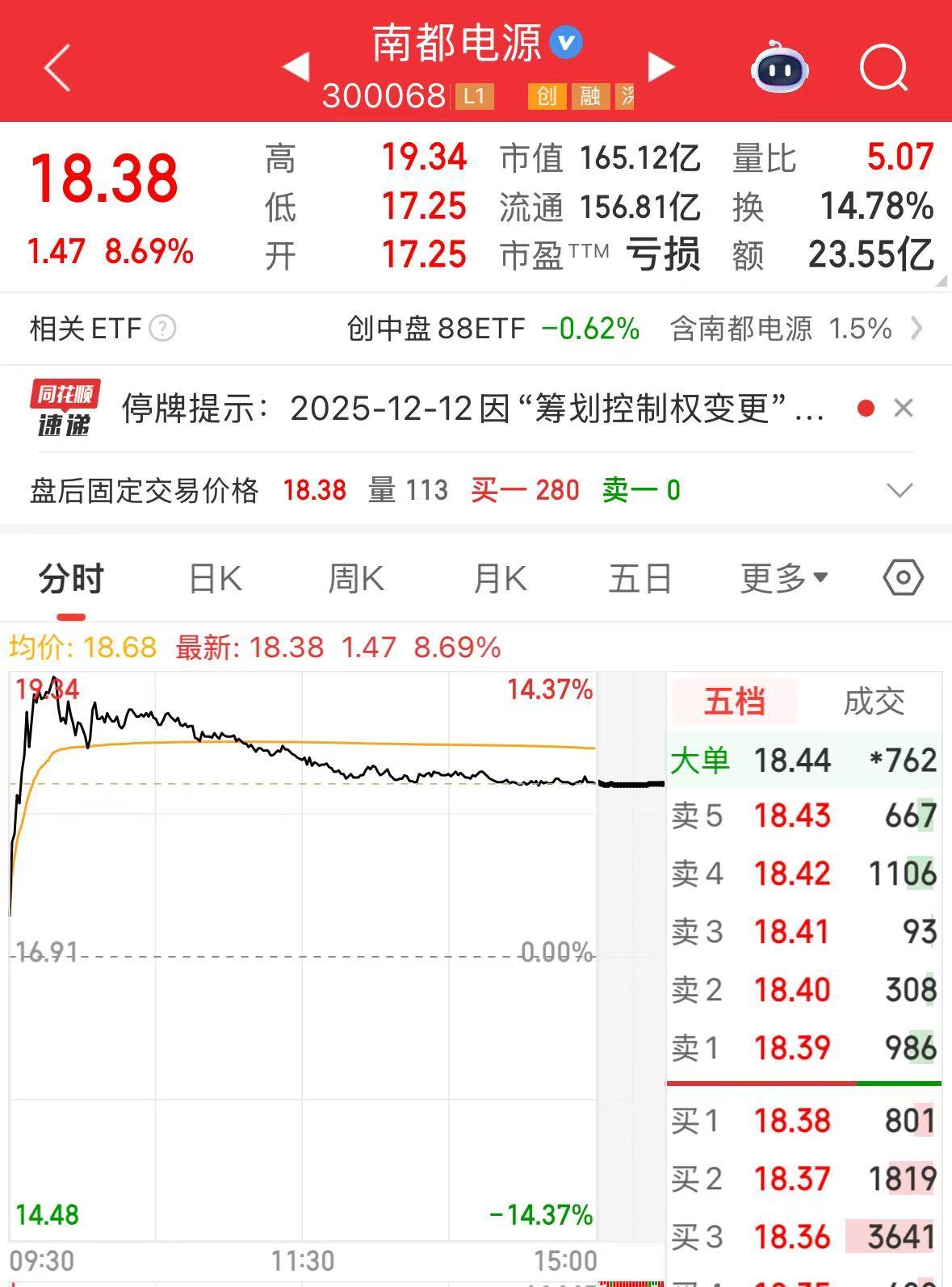 鉴于上述事项尚存在重大不确定性,为保证公平信息披露,维护投资者利益,避免公司股价异常波动,根据《深圳证券交易所创业板股票上市规则》及《深圳证券交易所上市公司自律监管指引第6号——停复牌》的相关规定,经公司向深圳证券交易所申请,公司股票(股票简称:南都电源,股票代码:300068)自2025年12月12日(星期五)开市起停牌,预计停牌时间不超过2个交易日。 公告称,停牌期间,公司将根据相关事项进展情况,严格按照法律法规的有关规定及时履行信息披露义务。 公开信息显示,南都电源长期专注于储能技术、产品的开发与应用,面向新型电力储能、通信和数据中心储能和民用储能领域,提供以锂电为主的产品、系统集成及服务,并已打通从锂电池制造、系统集成、运营服务到锂资源回收的全产业链,形成了围绕储能业务的一体化布局,构筑了储能全产业生态体系。 今年前三季度公司实现营业总收入59.11亿元,同比下降24.80%;归母净利润亏损2.2亿元,上年同期盈利2.47亿元;扣非净利润亏损2.54亿元,上年同期盈利4243.04万元;经营活动产生的现金流量净额为8.6亿元,上年同期为-7.22亿元;报告期内,南都电源基本每股收益为-0.25元,加权平均净资产收益率为-0.06%。 截至11日A股收盘,公司股价上涨8.69%。