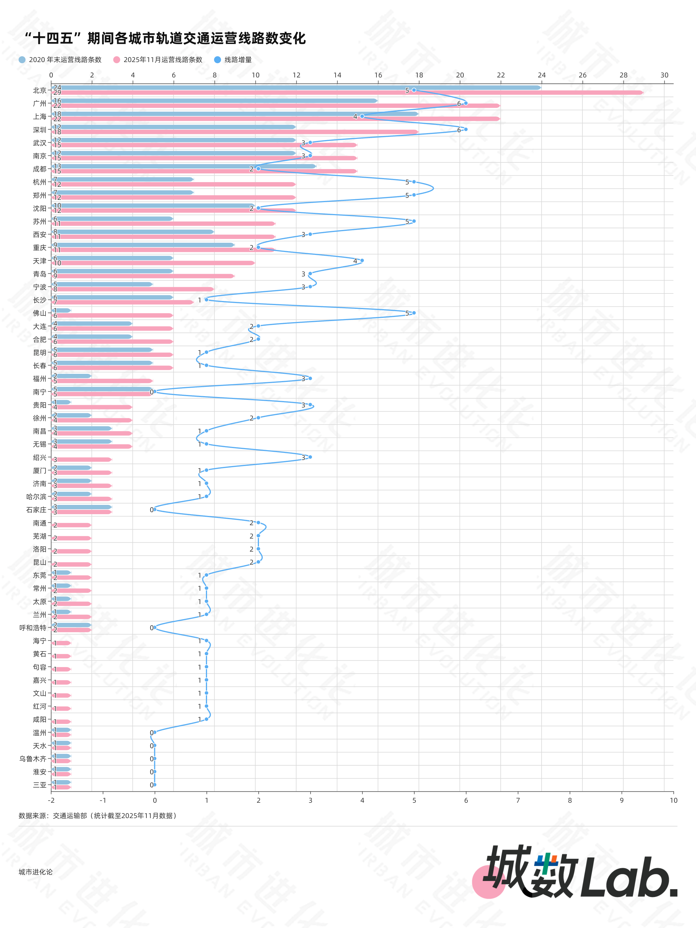 每经记者|程晓玲 每经编辑|杨欢 距离“十四五”正式收官仅剩十余天,全国城市轨道交通建设运营“五年成绩单”已初见分晓。 数据显示,2020年末至今年11月,全国新增10座城市开通运营城市轨道交通,线路增加近100条、运营里程增加3500多公里。具体来看,包括绍兴、南通、芜湖、洛阳等多个城市均实现零的突破。