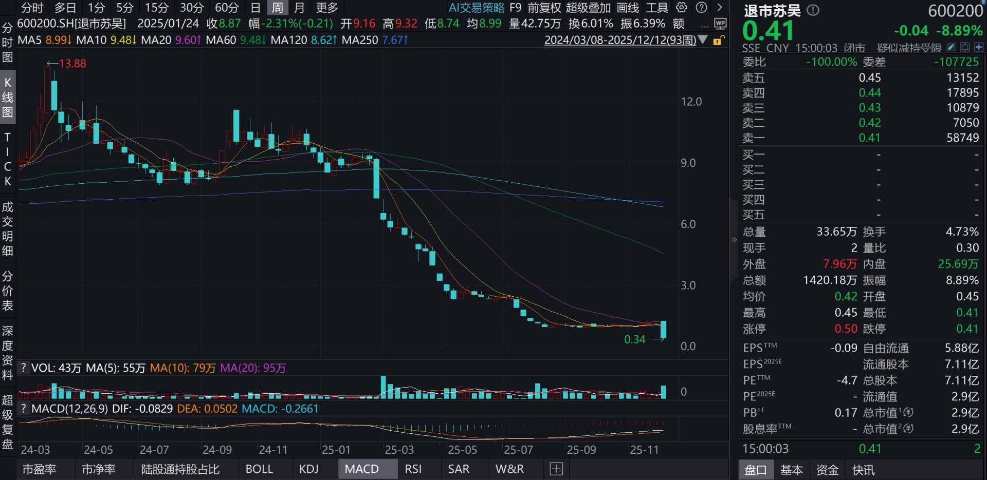 每经记者|黄海 许立波 每经编辑|张益铭 时隔半年,再次谈起钱氏姐弟财务造假的细节,退市苏吴(以下统称江苏吴中)的时任高管们变得沉默寡言。 因连续多年财务造假被勒令退市的江苏吴中股票于2025年12月9日进入退市整理期。截至发稿,留给中小股东决定去留的时间仅剩11个交易日。从12月9日开盘到现在,江苏吴中股价累计下跌66.94%。