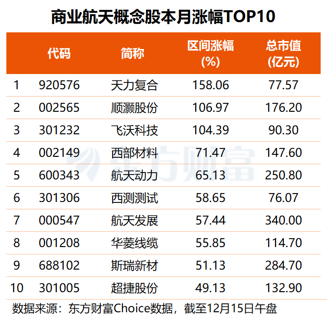 A股三大股指今日全线低开后弱势震荡,截至午间收盘,沪指跌0.11%,深成指跌0.71%,创业板指跌1.29%。 量能方面,两市半天成交1.18万亿元,较上一交易日同期缩量529亿元;近2600股早盘飘绿,仍有56股涨停。 板块方面,保险、乳业、商业百货、卫星互联网等涨幅居前,CPO概念、AI手机、培育钻石、能源金属等早盘领跌。 ![]() 乳业板块早盘领涨,皇氏集团、阳光乳业、均瑶健康强势涨停,骑士乳业、贝因美、熊猫乳品等多股跟涨。 消息面上,12月13日,全国医疗保障工作会议在北京召开。国家医保局表示,力争明年全国基本实现政策范围内分娩个人“无自付”。目前,吉林、江苏、山东等7个省份已实现政策范围内住院分娩医疗费用全额保障。 接下来,国家医保局将推动把灵活就业人员、农民工、新就业形态人员纳入生育保险覆盖范围。探索制定包括产前检查项目在内的基本服务包,减轻参保人生育医疗费用负担。将适宜的分娩镇痛项目按程序纳入基金支付范围,落实完善辅助生殖技术项目医保支付管理。全面实现生育津贴按程序直接发放给参保人。 另据国家卫健委消息,各地近日已陆续启动向符合条件的3周岁以下婴幼儿家庭发放育儿补贴工作,补贴标准为每孩每年3600元,为减轻家庭育儿负担、促进人口长期均衡发展提供有力支撑。 国元国际控股近日研报指出,育儿补贴有助于直接降低家庭生育成本,提振生育意愿,预计对下沉市场家庭效果更强,生育率有望进一步回暖。千亿补贴增量直接增加育儿家庭可支配收入,有助于拉动消费从基础刚需向品质升级延伸,乳制品、纸尿裤等必需品的品质需求有望显著提升。 东方财富Choice数据显示,目前A股市场共31股涉及乳业概念,其中17股前三季度净利实现增长(含扭亏为盈),品渥食品、骑士乳业、三元股份等5股业绩均实现翻倍增长。 资金方面,有9只乳业股本月获得杠杆资金加仓,其中,温氏股份获融资客抢筹约1.18亿元,妙可蓝多获融资净买入约2773.92万元,洽洽食品、皇氏集团、益生股份融资净买额均超千万元。 ![]() 商业航天、卫星互联网板块早盘触底回升,雷科防务、航天电子、通宇通讯、华菱线缆等多股涨停,天力复合、西测测试、陕西华达等涨超10%,飞沃科技、钢研高纳等多股跟涨。 消息面上,工信部日前召开党组扩大会议,传达学习中央经济工作会议精神,研究贯彻落实举措,其中提到,要推动信息通信业高质量发展,适度超前布局建设信息基础设施,推进6G技术研发。加快卫星互联网建设发展。 据媒体报道,SpaceX近日向员工通报,公司将回购部分内部人士持有的股份。该交易将使SpaceX的整体估值达到约8000亿美元,同时公司也在为可能于明年进行的上市做准备。 此外,朱雀三号总指挥戴政近日接受央视新闻专访时表示,虽然回收没有成功“略有遗憾”,但这一次发射是我国第一次进行入轨级运载火箭一子级的回收实验,“并不认为第一次首飞就必须要回收成功,更多带有一定的试验性质和探索的角度。”坠毁点距离着陆的中心点约40米,据戴政介绍,这意味着如果最后的着陆点火工作正常,预期是能够实现目标的,而且能落在场坪中心。 报道中还提到,继朱雀三号之后,长征十二号甲火箭将开始首飞与回收技术的验证。 华福证券最新研报指出,可回收火箭的发射试验突破,给行业底层逻辑带来明确拐点,火箭可复用打通产业瓶颈,制约行业爆发的底层运力问题如得到解决,则将显著提升卫星批量组网能力,产业链底层逻辑将从“运力稀缺”转化为“规模应用”。 ![]() (文章来源:东方财富研究中心) |