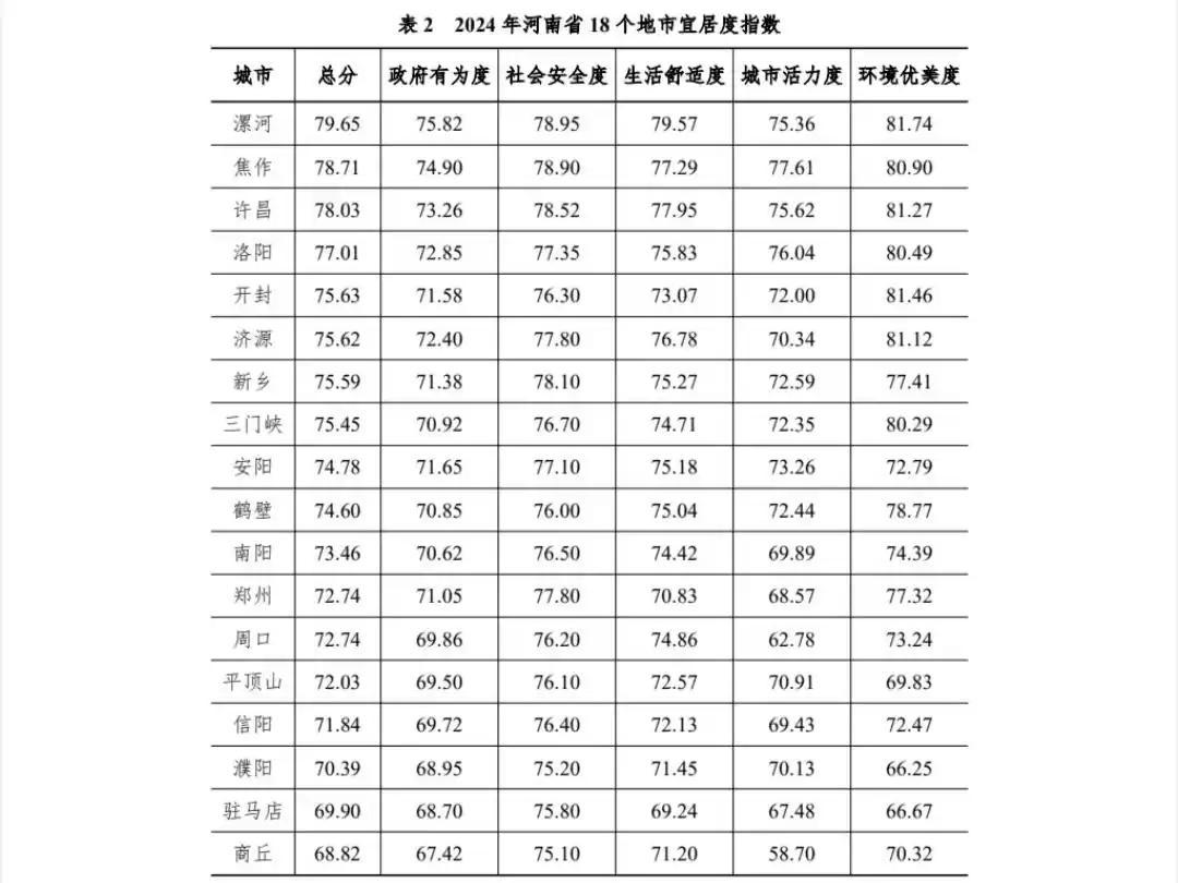 各地市宜居度差距明显,“十四五”期间,漯河、许昌、洛阳、开封的宜居度及核心维度呈阶段性调整,但始终领跑全省,平均宜居度得分维持在76分以上。其中漯河宜居度平均分为79.62,许昌同期平均分为78.49,开封平均分为77.07,洛阳平均分为76.72,排名靠前。