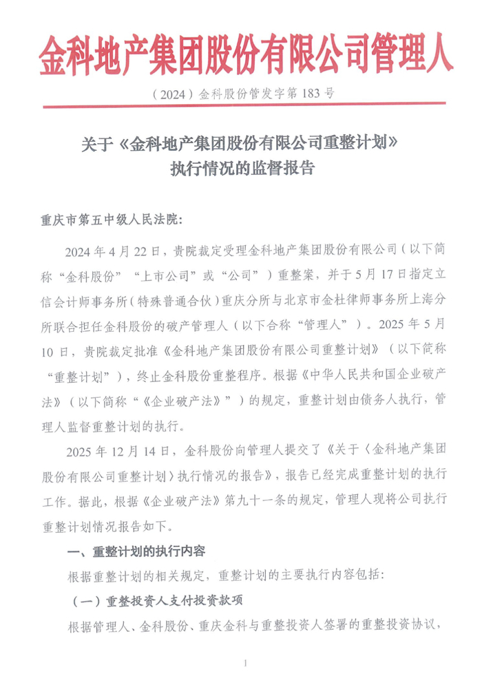 炒股第一步,先开个股票账户 12月15日晚间,金科股份(000656.SZ)发布《关于公司及控股子公司重整计划执行完毕的公告》。公告显示,经管理人监督报告及律师事务所法律意见书确认,公司及重庆金科重整计划均已执行完毕,标志着金科股份成为全国首家通过司法重整实现风险化解的“千亿级”上市房企。 作为代价,金科股份控股股东同时变更,公司实控人由创始人黄红云变更为无实际控制人,黄红云在掌控公司27年后彻底失去控制权。今后金科股份如何发展值得期待。 两年半重整之路终收官 根据公告对过程的披露,金科股份的重整可追溯至2023年5月。彼时,公司首次在内部董事会提出主动申请司法重整及预重组的设想。2024年2月,公司正式申请重整,4月22日,重庆市第五中级人民法院裁定受理。 此后,金科股份收到12家意向重整投资人报名材料,最终上海品器管理咨询有限公司与北京天娇绿苑房地产开发有限公司联合体中选。随后,又引入中国长城资产等产业投资人及20余家财务投资人,合计注资26.28亿元。 2025年1月,金科股份公布重整计划(草案),历经多次债权人会议表决,5月11日,重庆市五中院裁定批准金科股份及重庆金科的重整计划并终止重整程序。经过7个月执行,重整计划顺利完成。 具体而言,重整采取的是“现金 + 股票 + 信托受益权”的综合清偿方案。目前重整投资人共计26.28亿元投资款已全额支付到位;破产费用、职工债权及普通债权对应的清偿资金均已支付或完成专项预留;通过资本公积转增的约52.94亿股股票已转增并划转至指定账户;破产服务信托合同、资产管理协议已正式签署并生效。 ![]() 值得一提的是,本次重整中,金科股份及重庆金科涉及债务规模达1470亿元,债权人数量超8400家。不仅是今年国内首家破产重整的上市房企,还是房地产行业迄今最大的重整案。 控制权变更,业务转型面临挑战 记者注意到,金科股份董事会已于10月中旬改选完成,控股股东由金科控股变更为京渝星筑、京渝星璨,实际控制人由黄红云变更为无实际控制人,黄红云在掌控公司27年后彻底失去控制权。 公开资料显示,黄红云1964年出生于重庆市涪陵区,20岁时便开始在一家建筑公司当学徒,之后通过接手小项目赚取了“第一桶金”,并于1998年成立金科,投身房地产开发。2011年,金科股份借壳ST东源在深交所上市。 有关黄红云其人的争议不少。比如在2014年,黄红云宣布金科将投资500亿元进军风电、光伏产业,这一消息推动公司股价直接从2元一路飙升至9.76元。 但事后司法材料披露,私募大佬徐翔在背后用资金扫货,通过两人默契唱“双簧”的方式,2015年股价峰值时,黄红云家族密集减持,累计套现约60亿元。这也造成金科股份负债率涨至约90%,埋下隐患。今年3月,其本人也被监管部门立案调查。 还有就是牵出的家族内斗事件。2017年,黄红云与妻子陶虹遐离婚但签署了《一致行动协议》。2023年,双方家族内斗公开化,陶虹遐发文揭露股权腾挪内幕。为缓解资金压力,黄红云不断变更一致行动人,拉拢红星集团等,但盟友相继因自身债务问题退出。最终,金科股份进行司法重整。 ![]() 公告称,重整计划执行完毕预计将对公司2025年度的财务状况产生积极影响,具体影响金额以经审计的2025年度财务报表数据为准。 公告还透露,未来,金科股份将围绕“高效运营、精益管理、科技创新”展开战略转型,致力于成为聚焦强盈利能力和高投资回报的不动产综合运营商。但如何盘活存量资产、改善现金流、恢复市场信心,实现业务成功转型,仍是摆在金科股份面前的重要课题。 全新妙想投研助理,立即体验 (文章来源:新黄河) |