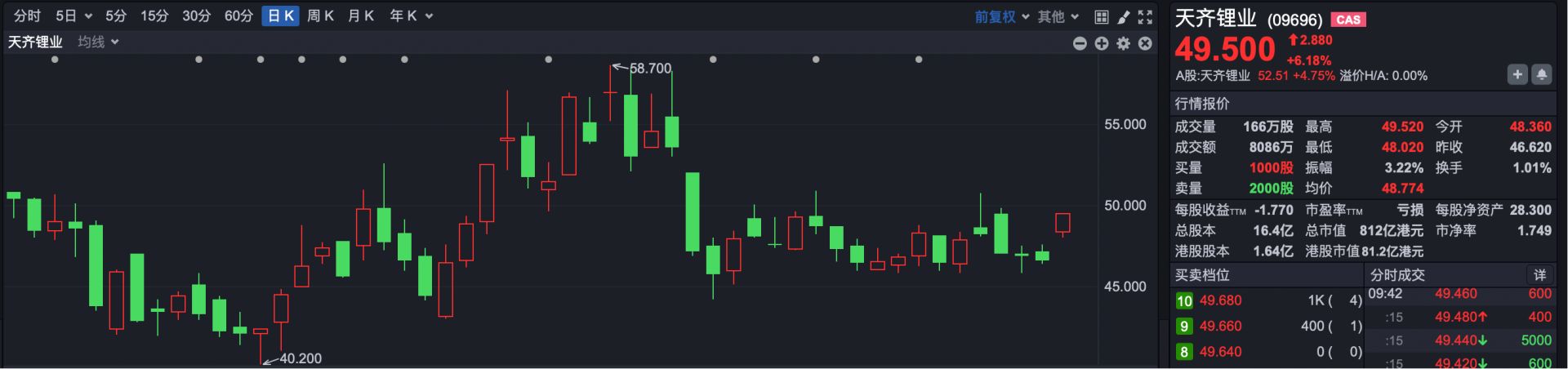 焦点公司方面,天齐锂业(HK09696)和赣锋锂业(HK01772)两家锂矿公司早盘均涨超6%。