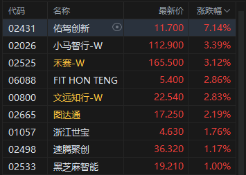 12月17日消息,港股智能驾驶概念集体走强,其中,佑驾创新涨超7%,禾赛-W、小马智行-W涨超3%,图达通、文远知行-W涨超2%。