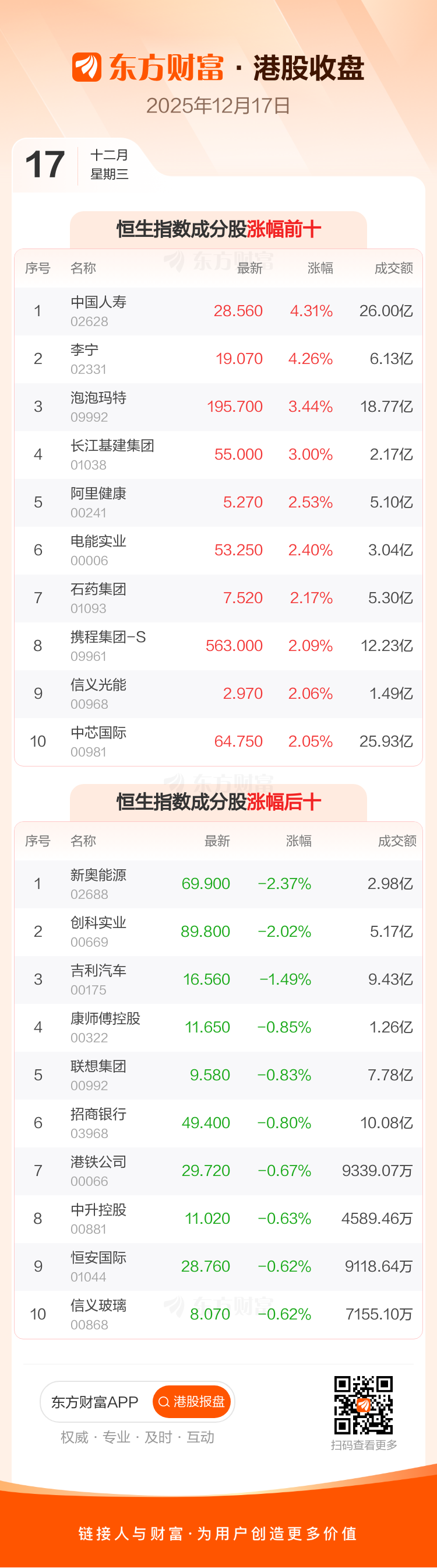 12月17日港股收盘:恒指涨0.92% 中国人寿领涨成分股