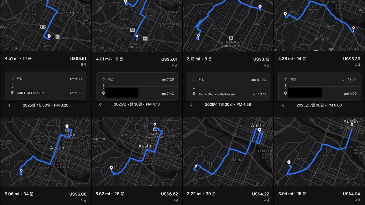 此外,有网友分享实测Robotaxi 最新的短程动态优惠(Short rides now costless with dynamic pricing)政策,当日连续搭乘11 趟,总里程约55.83 英里(约89.8 公里)、耗时254 分钟,总车资仅56.83 美元。换算下来,平均每英里约1.02 美元、每公里约0.63 美元,且全程免小费。