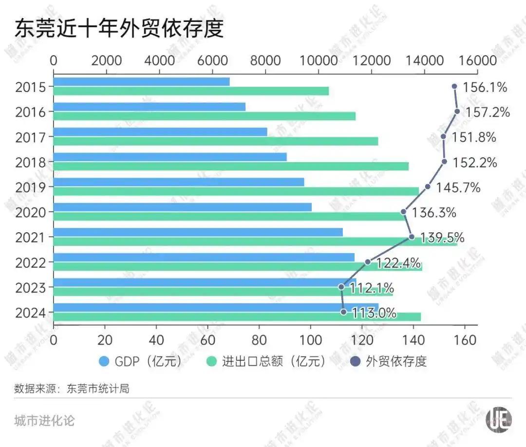 图片来源:摄图网_502496916_ 12月16日,黄埔海关发布最新数据显示:今年前11个月,东莞市外贸进出口总值1.44万亿元,规模创历史同期新高,稳居全国第五;进出口总值同比增长14.3%,已连续20个月保持增长,增速居全国外贸万亿级城市首位。 其中,东莞市外贸出口规模8789.5亿元,增长8.7%;东莞市外贸进口规模5572.4亿元,增长24.3%。具体来看,前11个月,该市有进出口实绩的外贸企业数量2.7万家,同比增加15.6%,已超2024年全年总量。其中,民营企业进出口9000亿元,同比增长20.9%。 解读:2024年,宁波年度外贸规模正式超过东莞,自21世纪以来首进全国前五。不过时隔仅半年,东莞就以16.5%的增速优势,再度反超宁波,夺回“外贸第五城”之位,并保持强劲增长势头,在前11个月以14.3%的外贸增速,拿下了全国外贸万亿级城市增速第一。 具体来看,新兴市场是东莞外贸增长的重要动力之一。前11个月,东莞对全球200多个国家和地区有进出口贸易。其中,对54个国家和地区进出口同比增长超50%。对共建“一带一路”国家进出口同比增长24.3%,占比达三成。对东盟进出口同比增长36.8%。 同时,作为制造业强市,东莞也在持续提升产业竞争力,向高技术、高附加值方向升级。数据显示,前11个月,东莞出口机电产品6174.2亿元,增长12.3%,占同期东莞市出口总值的70.2%。其中,出口集成电路、电工器材、电脑及其零部件、手机分别增长20.1%、20.6%、18.4%、6.9%。 外贸一直被视为衡量东莞经济的“晴雨表”。东莞外贸依存度(进出口总额/GDP)一度超过400%。2024年,这个数字降至113%,较前些年有明显下降,但仍是全国外贸依存度最高的城市之一,在万亿城市中仅次于深圳(122.4%)。