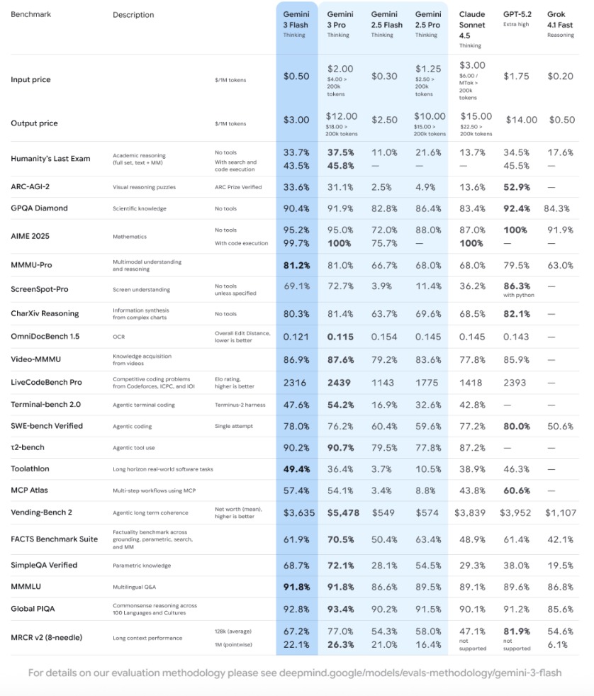 狙击Open AI!谷歌一个月内连发“数弹” 全新妙想投研助理,立即体验 “为速度而生的前沿智能”,12月18日凌晨,谷歌发布博客,官宣又一王炸Gemini 3 Flash,这是Gemini 3 系列速度最快、性价比最高的模型,也是但同时,这次被行业关注的点在于,这个Flash模型在做到又快又便宜的同时,部分性能甚至能比旗舰模型要好。 值得注意的是,这也是谷歌一个月内在大模型领域的第四次动作更新。 ![]() 谷歌CEO桑达尔·皮查伊(Sundar Pichai)发帖介绍,Gemini 3 Flash性能和效率均突破了帕累托极限,它的性能超越了上一代旗舰模型2.5 Pro,同时速度提升了 3 倍,而价格却低得多。 “Gemini 3 Flash 证明,速度和规模无需以牺牲智能为代价。”在博客中,官方放出豪言。从评测数据来看确实如此。 在用于评估编程能力的基准测试 SWE-bench Verified 中,Gemini 3 Flash 的得分高达 78%,超越了自家的旗舰模型Gemini 3 Pro和Anthropic旗下的Claude Sonnet 4.5;在多模态理解基准 MMMU-Pro 上,Flash得分81.2%,不仅超过 GPT-5.2(79.5%),还甩开 Claude Sonnet 4.5 十几个百分点。 ![]() 种种数据表明,这次的Flash模型进步很大,突破了用户印象里的轻量化模型:快、便宜,但是性能往往会打折。而Gemini 3 Flash做到了接近旗舰的能力,同时满足效率和性价比。 根据大模型竞技场Imarena.ai的数据,目前Gemini 3 Flash在文本、图像和编程领域排名前 5,数学和创意写作类别排名第2,是性价比最高的前沿模型,输入仅0.5 美元/百万Tokens,输出3美元/百万Tokens。 作为对比,Claude Sonnet 4.5的输出是15美元/百万Tokens,GPT-5.2的输出是14美元/百万Tokens,是Gemini 3 Flash定价的近5倍。 谷歌表示,在最高思维水平下进行处理时,Gemini 3 Flash 能够灵活调整其思考时间。对于更复杂的应用场景,它可能需要更长的思考时间,但根据典型流量的测试结果,它平均使用的令牌数量会比上一代的2.5 Pro 少 30%,从而以更高的性能更准确地完成日常任务。 Gemini 3 Flash保留了Gemini 3 在复杂推理、多模态、智能体和编程任务方面的突破性性能,同时结合了 Flash级别的延迟、效率和成本优势相结合。“这是迄今为止在智能体工作流程方面最出色的模型。”谷歌称。 一位开发者用Gemini 3 Flash和“两个性价比之王”做了Python对比测试,其中一个是OpenAI的性价比版本GPT-5Mini、一个是国产开源之光DeepSeek-V3.2。 结果显示,成本上三个模型差不多,但是速度上Gemini 3 Flash只要9秒,而GPT-5 Mini、DeepSeek-V3.2分别用了35秒和41秒,同时效果上Gemini 3 Flash胜出,这是一个平衡了速度和性能的模型。 “更快、更便宜、还能免费用,这才是独立开发者和小团队真正需要的东西。”一位独立开发者发文表示,如果之前是用 GPT-4o或Gemini 3 Pro跑应用,换成Gemini 3 Flash,成本预计能直接降50%-70%。 从今天起,Gemini 3 Flash将面向所有用户推出,即便是免费用户也能用上,在Gemini App 里,Gemini 3 Flash 会替代2.5 Flash成为新的默认模型,而Gemini 3 Pro则是留给用户处理高难度数学和代码问题的一个选择。 上个月,谷歌推出了Gemini 3 Pro和Gemini 3 Deep Think,获得了广泛的市场认可,并反超OpenAI成为大模型领域的领先者。博客提到,自发布以来,内部的API 每天处理超过1万亿个tokens。用户经常使用 Gemini 3 进行代码模拟,学习复杂的主题,构建和设计交互式游戏,并理解各种类型的多模态内容。 凭借性价比和性能,此次推出的Flash预计将受到更大程度上的欢迎,谷歌表示,Flash一直是内部最受欢迎的版本,此前的Flash 2和 Flash 2.5 处理着数百万开发者构建的数十万个应用程序中数万亿个tokens。 “Flash模型真正为开发者量身打造,而 Flash3则让他们无需再在速度和智能之间做出妥协。”谷歌又一张王牌露出,留给OpenAI应战的时间不多了。 想炒股,先开户!选丁冬财经证券,行情交易一个APP搞定>> (文章来源:第一财经) |