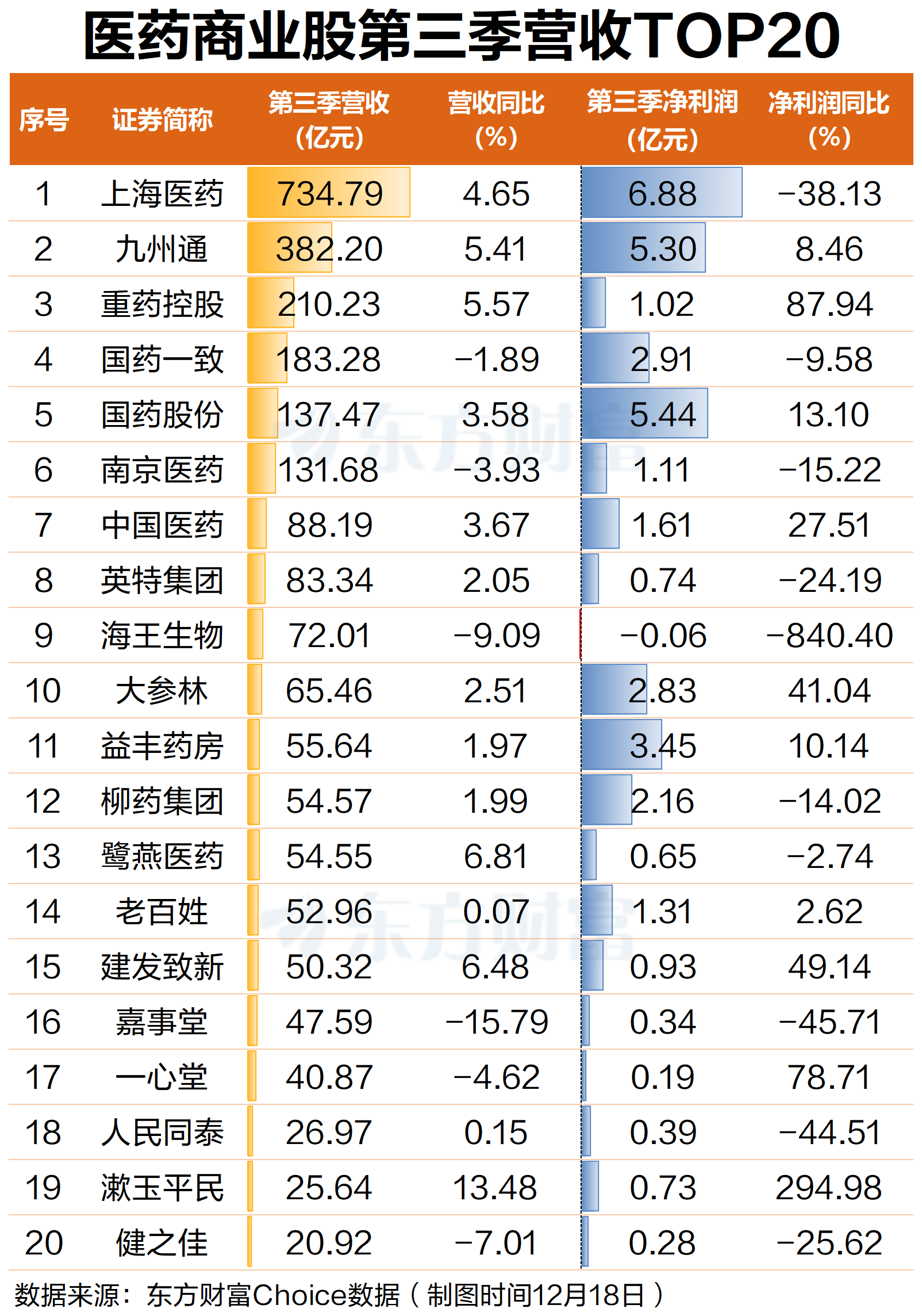 ![]() 12月18日,医药商业掀起涨停潮,领涨A股行业板块。截至早间收盘,板块上涨4.22%,华人健康20CM涨停,漱玉平民涨超10%,英特集团、塞力医疗、鹭燕医药、重药控股涨停,达嘉维康涨超7%,开开实业、药易购、合富中国等涨超4%。 消息方面,蚂蚁集团近日宣布旗下AI健康应用AQ品牌升级为“蚂蚁阿福”,并发布App新版本,升级健康陪伴、健康问答、健康服务三大功能。升级后的“蚂蚁阿福”聚焦“健康+”战略,定位从AI工具转向AI健康朋友,能够像真人朋友一样,帮助用户管理自身和家人健康。 目前,“蚂蚁阿福”App的月活用户已超1500万,跻身国内AIApp前五,成为第一大健康管理AIApp。据了解,目前阿福APP每天回答用户500多万个健康提问,55%用户来自三线及以下城市,普惠特点明显。 ![]() 蚂蚁集团副总裁、健康事业群总裁张俊杰 此外,近期全国进入流感高发期,但当前流感病毒检测阳性率有所下降。中国疾控中心最新监测数据显示,2025年第50周(2025年12月8日至12月14日)北方省份流感病毒检测阳性率延续上一周的下降趋势;南方部分省份流感病毒检测阳性率也出现下降。 中国疾控中心病毒病所研究员王大燕提示,全国流感活动整体已达到通常所说的“拐点”,但并不意味着流感高发期已过,且各省份达峰时间会有所不同。达到峰值后,下降到较低流行水平一般还需要6至8周时间,下降过程中也有可能出现小幅波动。 ![]() ![]() 图片来源:中国疾控中心 中国疾控中心提示,要持续做好个人防护,老年人、婴幼儿、慢性病患者等重点人群在人群密集场所或乘坐公共交通工具时佩戴口罩。同时,勤洗手,每天开窗通风2至3次,对门把手、餐具等常接触物品定期消毒。此外,保持均衡饮食、适量运动和充足休息,增强免疫力。如出现高热、咳嗽等流感症状时,及时就医并减少外出,避免带病上班、上学。 业内人士指出,流感病毒的高传染性催生用药刚需,抗病毒药物(如奥司他韦等)需求提升;退烧药、止咳化痰药等对症品类则随轻症患者自我药疗需求激增。同时,公众对防护的重视推高口罩、消毒液、免洗凝胶等消杀产品的复购率,零售药店有望从中受益。 国泰海通表示,由于实体药店数量在2024年再创新高,年内数量一度突破70万家,较2014年末的43.5万家增长超60%,平均单店服务客群水平下探至约2000人/店,行业竞争压力凸显,部分中小连锁药店由于经营不善开始申请破产或注销,24年Q4与25年Q1行业门店数量分别净减少4000家、3000家,同时行业头部连锁药店受益于更强的经营韧性与管理能力,关店比例更低,根据中康数据(25Q1vs24Q3),在不同规模药店中行业TOP10连锁关店率最低为2.3%,其他小连锁关店率最高为4.5%,此种趋势下行业集中度有望进一步提升。 2026年龙头药店将通过“内生+外延”同步驱动增长:1)内生方面:近期流感发病率快速爬升将带动呼吸类等药品销售;2)外延方面:头部连锁药店有望通过并购方式实现持续性扩张,当前部分行业龙头直营门店数量约1万家,行业占比仅约1.5%,仍处于较低水平,行业格局变化仍处于早期阶段,长期看好行业集中度提升发展主线。 据东方财富Choice数据,中信医药商业行业中A股上市公司共计36家,今年前三季度营收合计2668.86亿元,其中上海医药、九州通、重药控股位列前三,营收合计1327.23亿元,占比49.73%,相较去年同期(48.17%)上升了1.56个百分点,头部效应进一步提升。 ![]()
